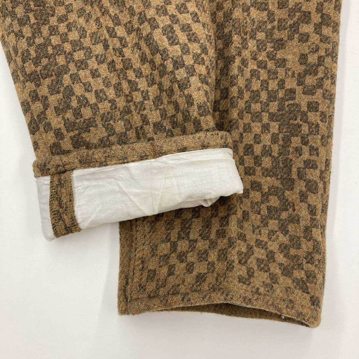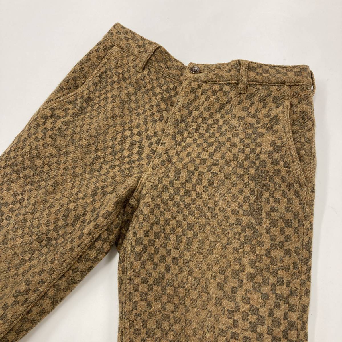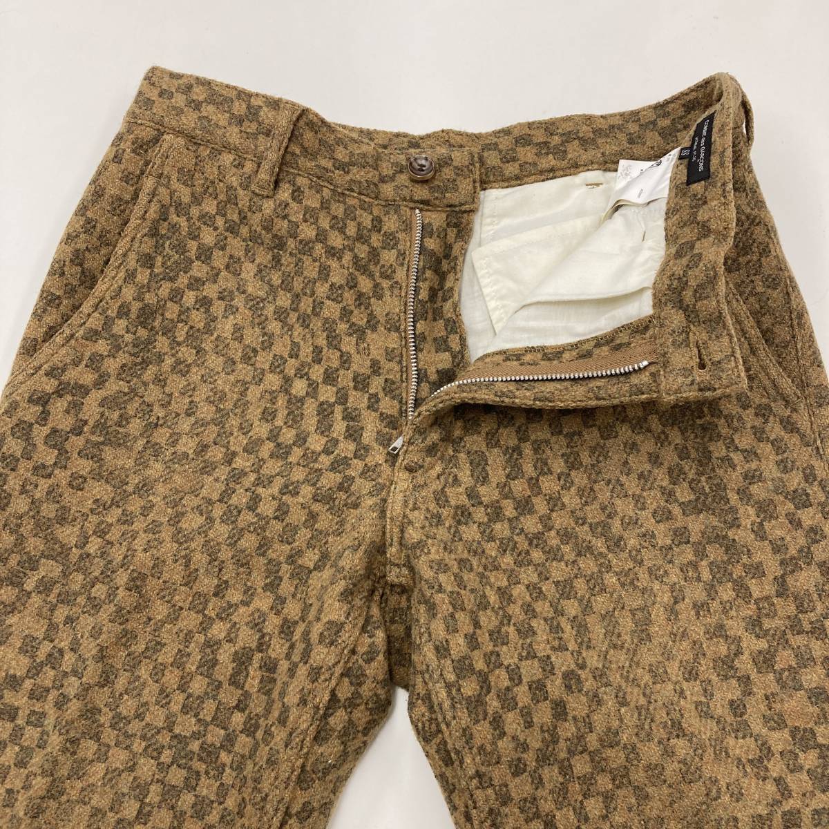 AD2007 COMME des GARCONS HOMME PLUS チェッカー 総柄 プリント ウール スラックス ベージュ