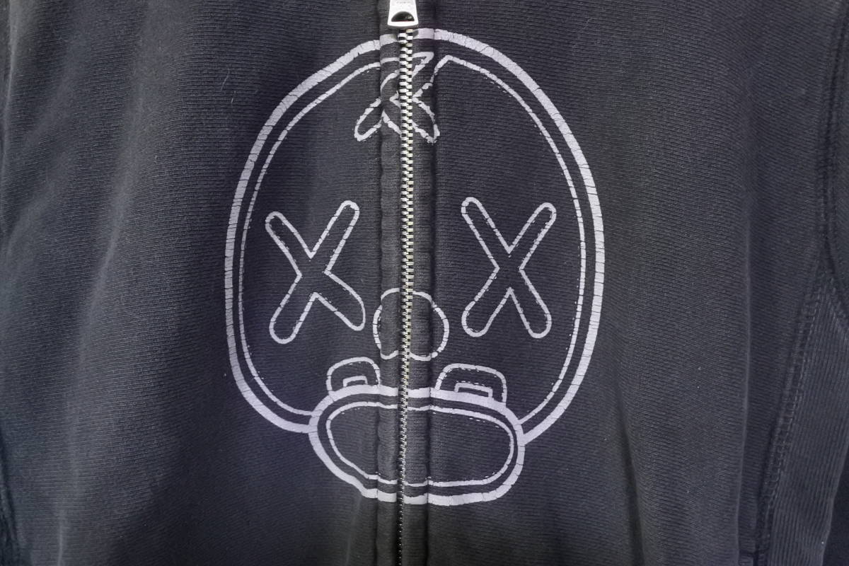 キッズサイズ120・色褪せたブラック・日本製・使用感色褪せ・両袖口ダメージ・品質タグネーム書き込み有り