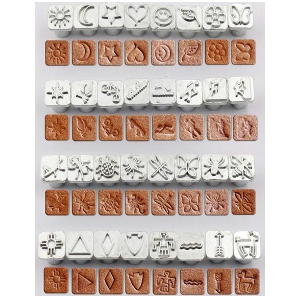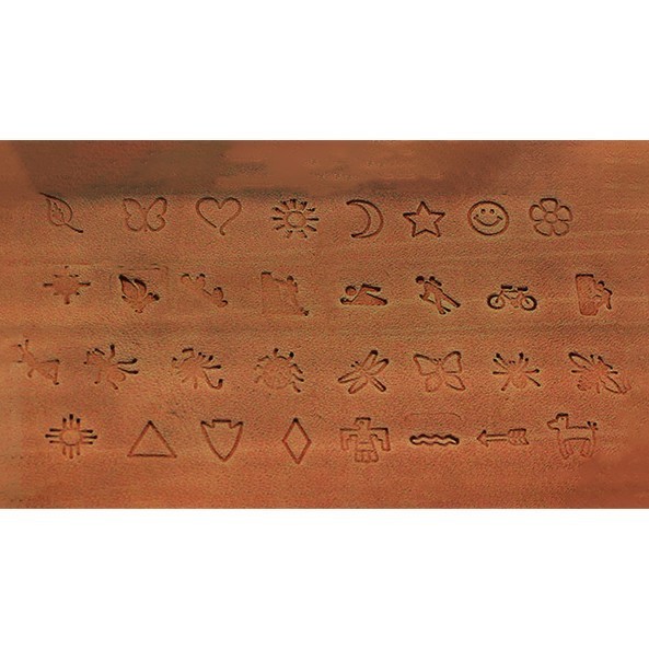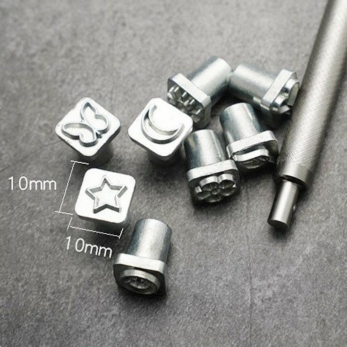 濡らしたヌメ革に付属の打ち棒をセットし、ラウンドモールなどで叩いて刻印します。