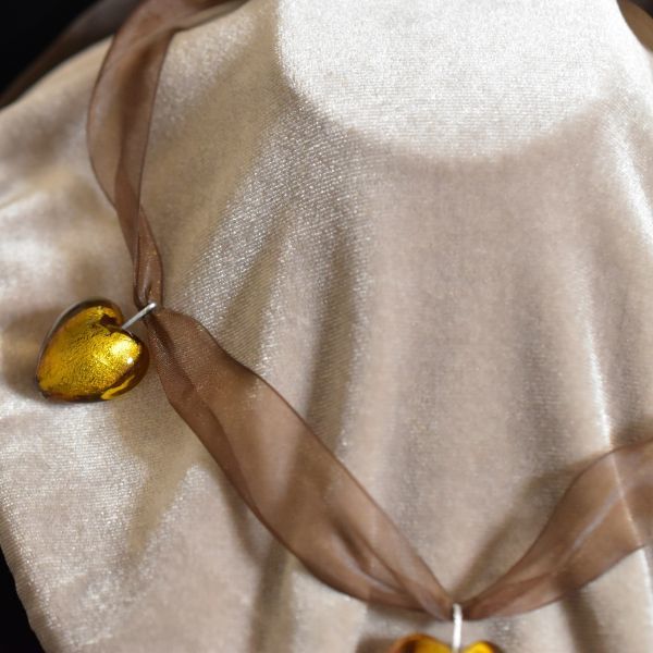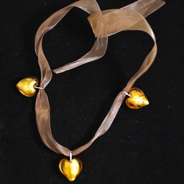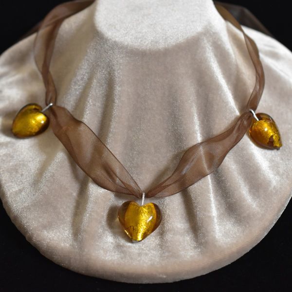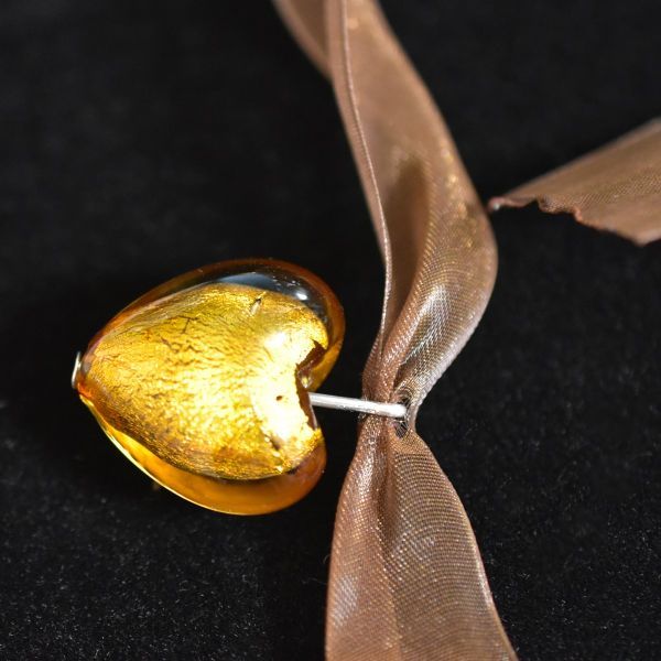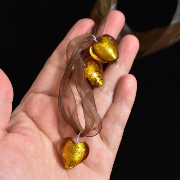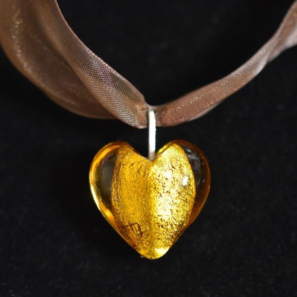 ヴィンテージ ムラーノガラス/ムラノガラス フォイルガラスのハートとレースのネックレス 本物保証