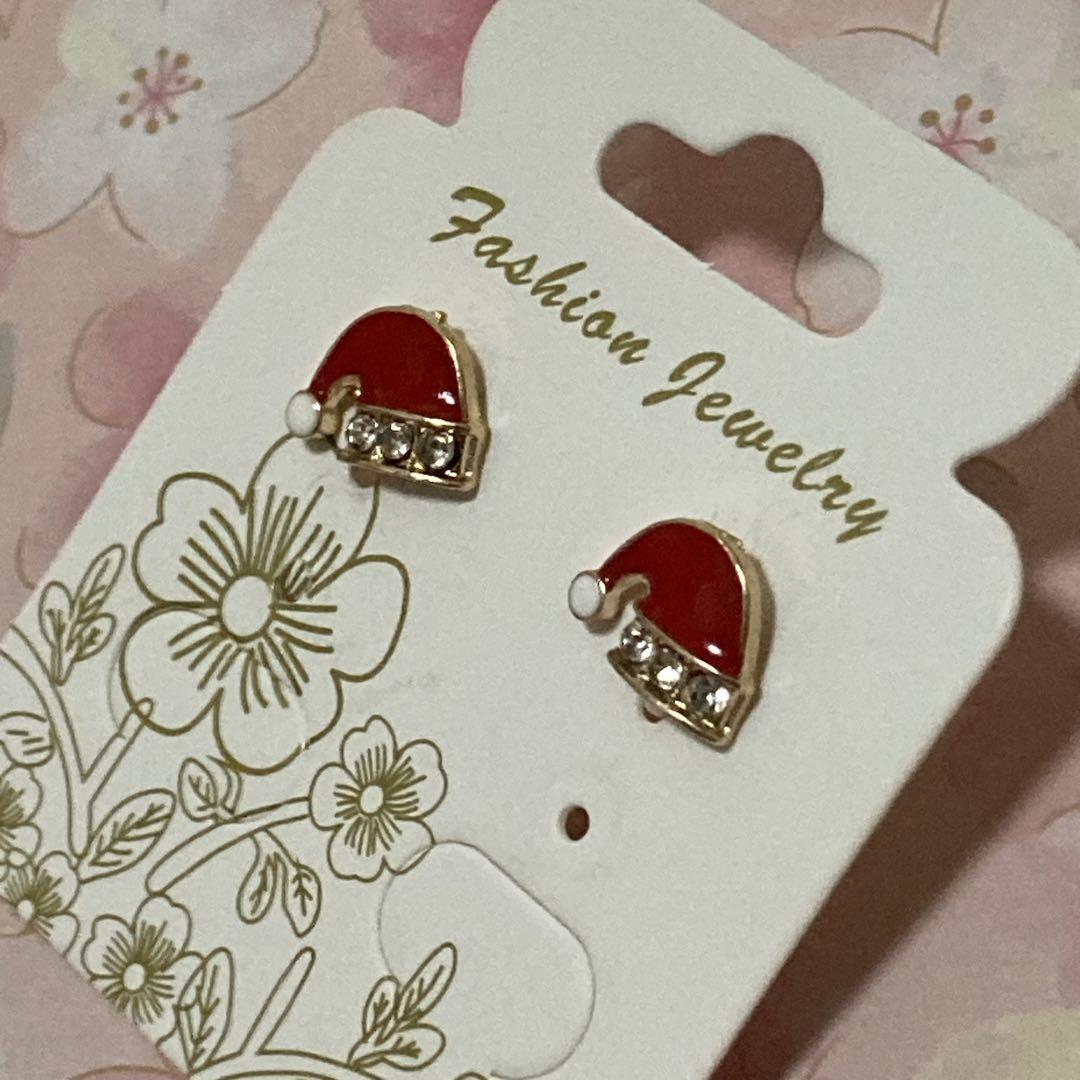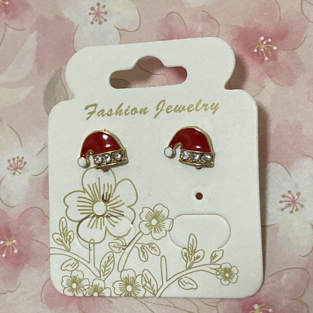 クリスマスのサンタ帽子のピアス ラインストーン サンタクロース 冬 サンタクロース帽子