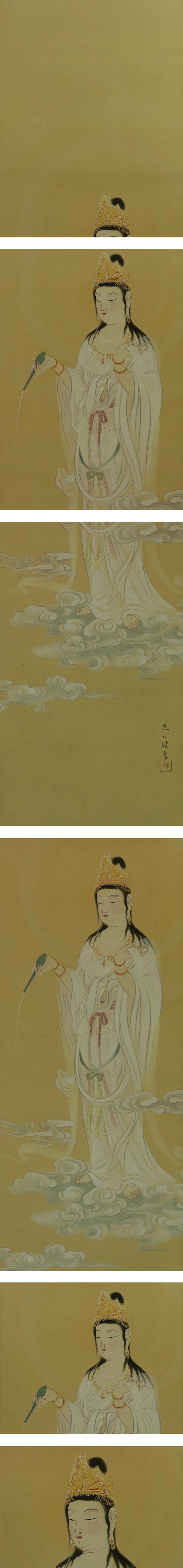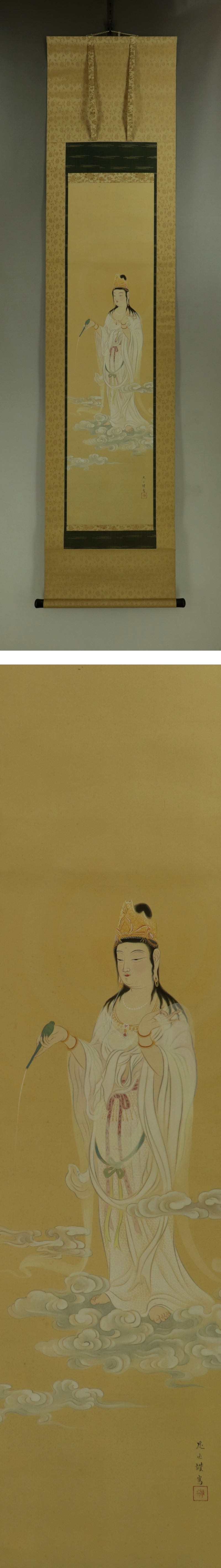 | №2205050 希少【真作】松本晁光【雲上観音】◆絹本◆合箱◆掛軸 | |