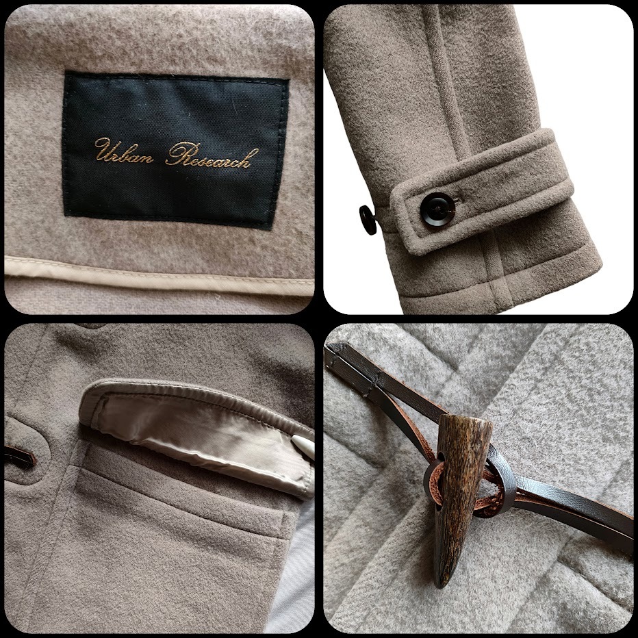 ●URBAN RESEARCHアーバンリサーチ/ハーフダッフルコート/ウール/グレージュ/トグルボタン/フリーサイズ●