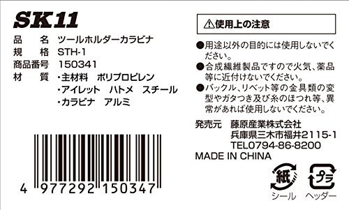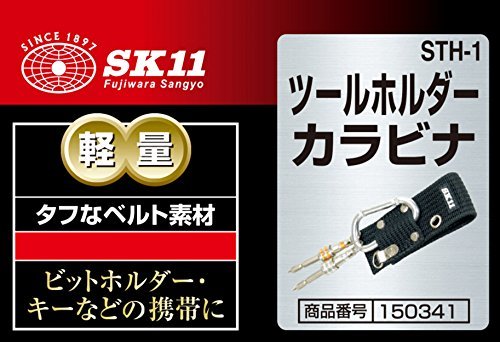 ・カラビナ STH-1・商品サイズ:幅60×高さ120×奥行き30mm・重量53g・色:黒・規格:STH-1・用途:ビットホルダー・キー等の道工具類の携帯・機能・特徴:タフなベルト素材です。商品紹介 用途:ビットホルダー・キー等の道工具類の携帯 機能・特徴:タフなベルト素材です。 仕様: 色:黒 注意事項: 合成繊維製品ですので、火気・薬品等に近づけないで下さい。 バックル、ベルトなど金具類の変形やガタつき及び糸のほつれなど異常のまま使用しないでください。 より ●キーホルダーやレンチ、モンキー等を簡易で吊り下げるのに便利