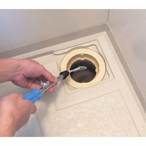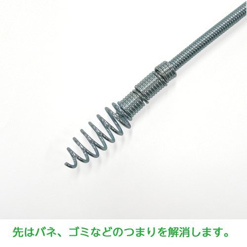 ・シルバー 5メートル PR80-5M・・Size:5メートル・配管のつまりをスッキリ解消! パイプや配管内のゴミなどの清掃に使用します。折れにくい2重巻構造で、螺旋状の頭部が汚れを粉砕し、パイプの奥まで入り込みます。・ワイヤーの長さは5m。ゴミの詰まりを解消することで排水の流れをスムーズにします。手元が汚れにくいゴム製の水切り付き・詳しい使用方法は商品画像欄にあります動画をご覧ください。・流し、風呂、雨どいなどの排水パイプに使用します。説明 ●ポップアップ式の排水栓には使用できません。 ●組立ておよび作業には手袋をはめてから行ってください。ケガをするおそれがあります。 ●ビニールホースなど軟質のパイプには使用しないでください。パイプ破損で漏水し、家財などをぬらす財産損害発生のおそれがあります。 ●細いパイプ、曲りの小さいパイプなどの無理な使用は避けてください。使用中に器具がぬけなくなるおそれがあります。 ●ワイヤーを回転させる場合、余った側のワイヤーも捩じれて予測できない動きをしますので、ケガや家財破損のおそれがあります。余った側のワイヤーは束ねてご使用ください。