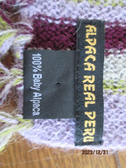 ブランド、メーカー:ALPACA KEAL PERU カラー: 紫・緑・白・エンジ色ストライブ柄 サイズ:135Lx14W