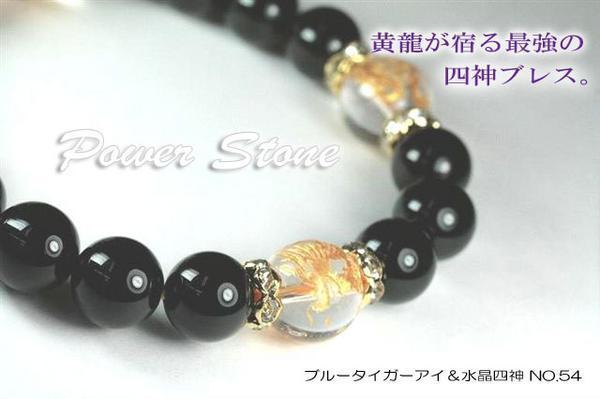 天然石 パワーストーン ブレスレット 青虎目(ブルータイガーアイ) 水晶 四神 パワーブレス 風水 運気上昇 黄龍 四神獣 No54