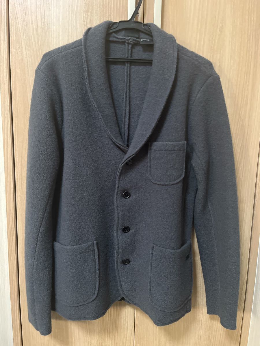 これは、洗練されたスタイルを持つARMANIのジャケットです。Mサイズで、すっきりとしたシルエットが特徴です。クローゼットで保管していました。