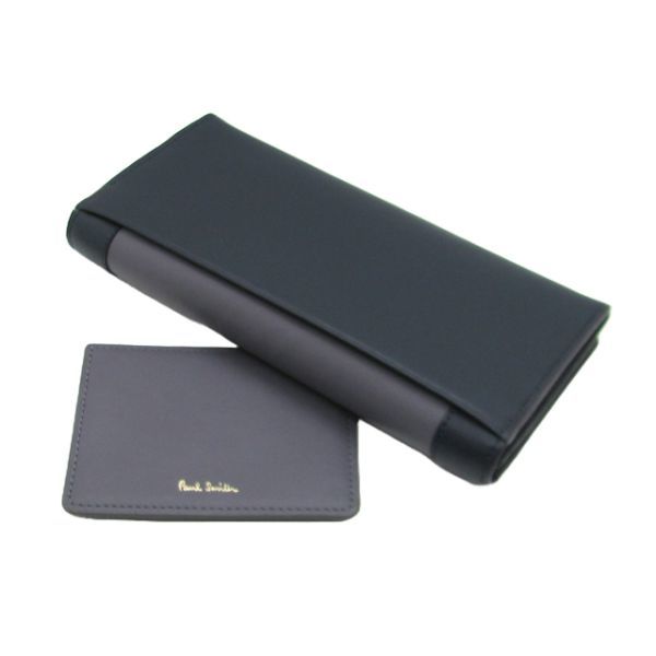 ★新品 ポールスミス 長財布 グレー カードケース付 コントラストカラーブロック★572