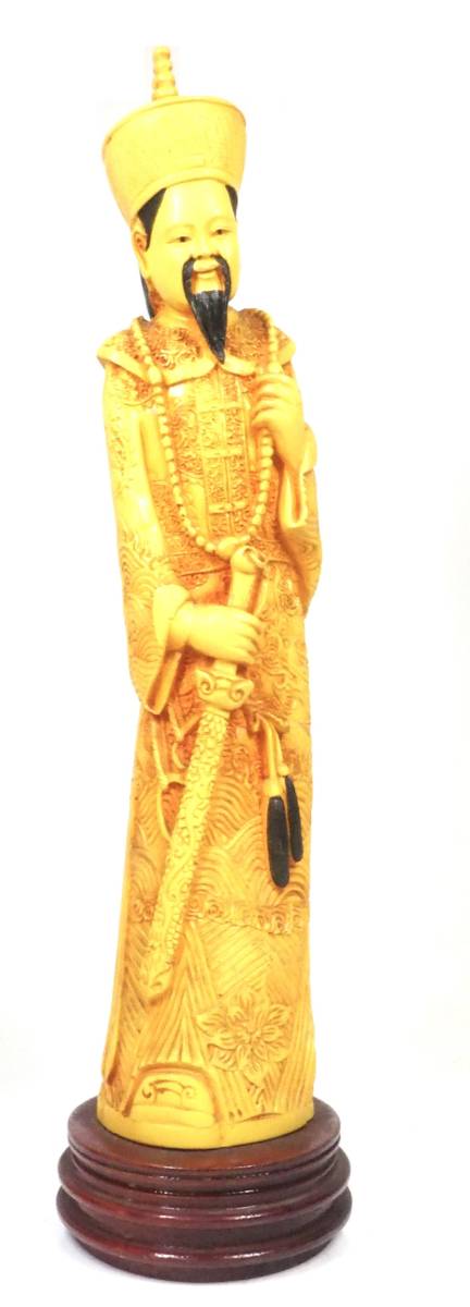 中国古玩  東洋彫刻  骨細工 中国皇帝彫刻像