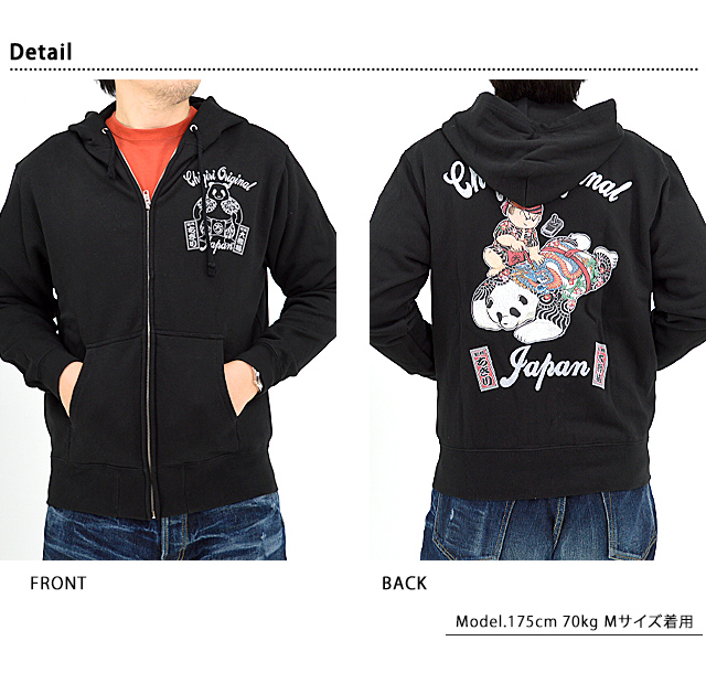 CHIGIRIさんから「和彫りパンダ&ちぎりインクジェットジップパーカー(CHL57-984)」のご紹介です。 かわいいパンダに刺青を彫っているベイビーちゃん。 ボディーには、裏毛タイプのスウェット生地を採用。 フロントはジップアップ仕様。 身頃にはポケットが縫い付けられています。 | |||||||||||||||||||||||||