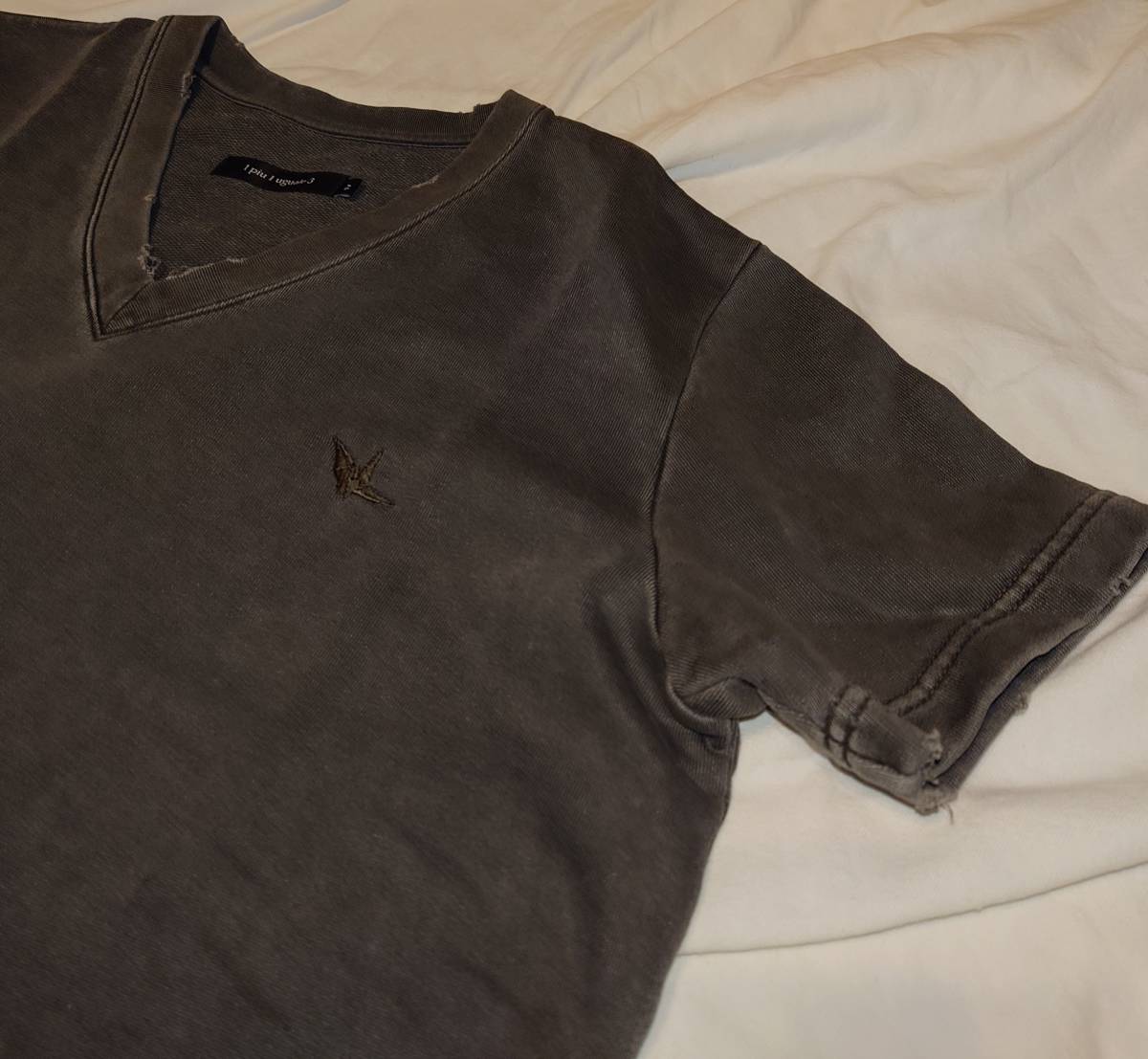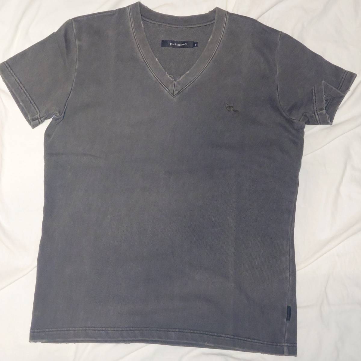 1piu1uguale3 AMERICAN DRYSWEAT ダメージ加工 VネックTシャツ グレー サイズIV(4) 日本製 新古品 定価3万円 MRT150-COT226