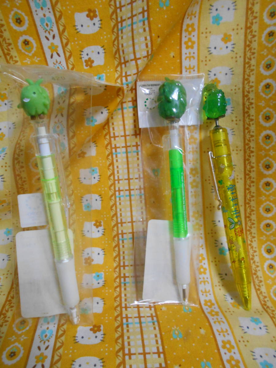 クリアファイルはA4版で3色とありますので3種類入っているようです。メモ帳は横から見る限りイラストは1種のようです。シャーペン&ボールペンは未開封の2種のうちボールペンが使える状態か確認しません。2005と古いお品ですので使えないことも考えられます。クリアフィギュアが付いたボールペンのみ新品ではありませんが、使用出来ることを確認しました。