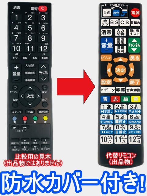 | 【商品名】 maxzen J-MX100RC 代替リモコン 【対応機種】 J32CH01 J32CH02 JU75CH01 J43SK03(2020年モデル※) JU43SK03(2020年モデル※) JU55SK04(2020年モデル※) ※ シリアル番号が「S/N:SK」で始まるテレビ(2018年モデル)はこちらのリモコンでの操作はできません。 上記機種以外については、質問欄よりメーカーと型番をご連絡頂ければ、対応品のご案内をしております。 【商品について】 右側の代替リモコンが出品物になります。左側のリモコンは見本画像です。 タイトル機種のリモコン信号を入力した設定不要ですぐ使える純正品と同等の代替リモコンです。 リモコン左上のモード切換ボタンにて、各機能のボタンをお使いいただけます。 商品に不具合があった場合は代替品交換かご返金にて対応させて頂きます。 【付属品について】 防水リモコンカバーをお付けします。 ボタン機能を印刷した薄型フィルムはリモコンに貼付け済みです。 乾電池は付属しません。別途ご用意下さい。(単4乾電池×2本) 【発送について】送料無料 迅速発送を心掛けております。土日祝日はお時間を頂く場合ございます。 ポスト投函配達となり、日時指定は出来ません。 | ||