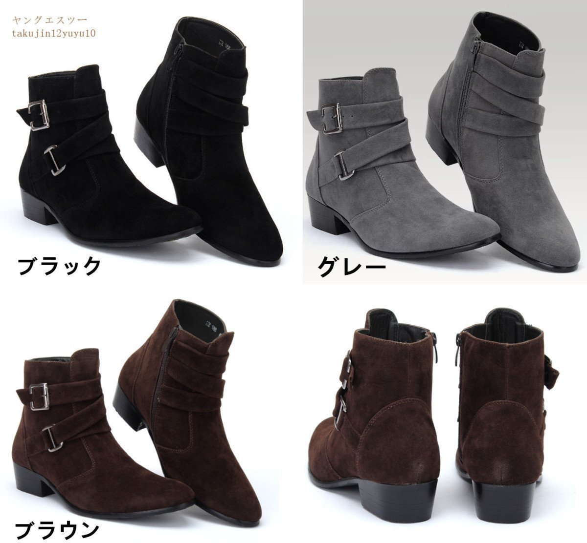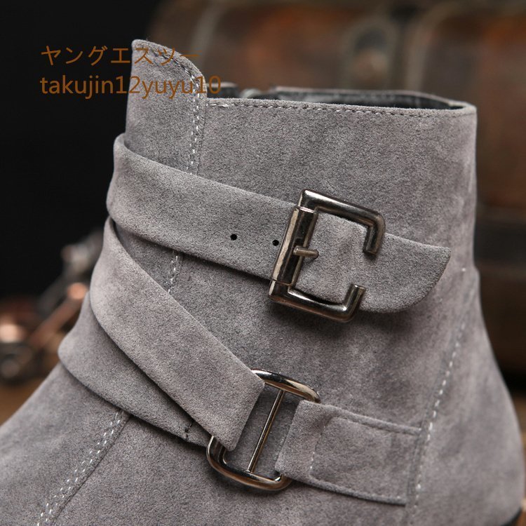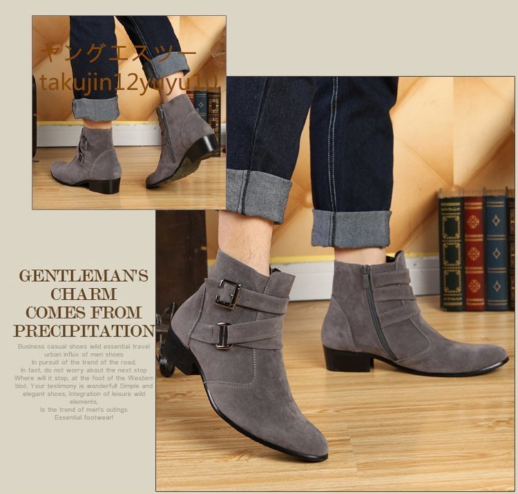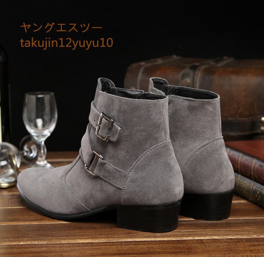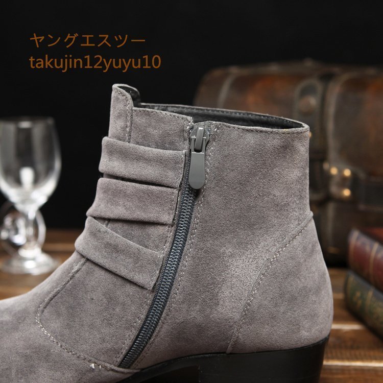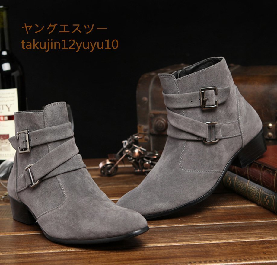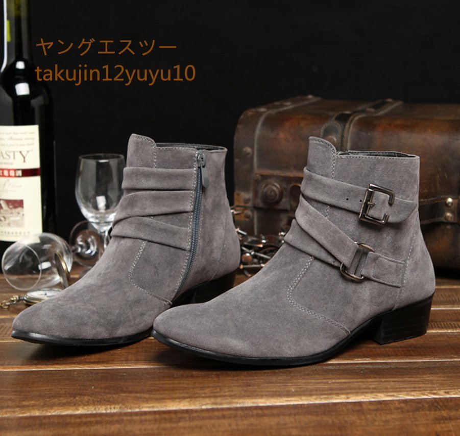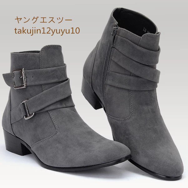 新品 ショートブーツ メンズ ブーツ ヒールブーツ お洒落 サイドジップ スエード革 シークレット クラシック シンプル 三色 グレー 24.5cm