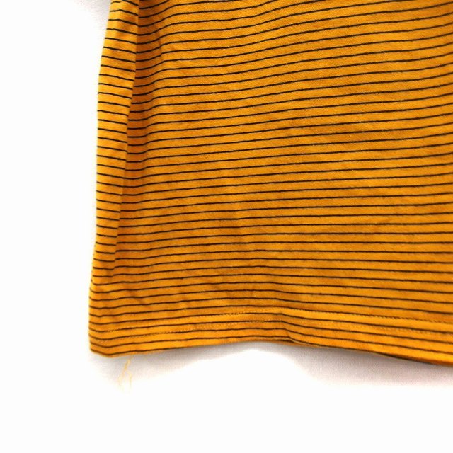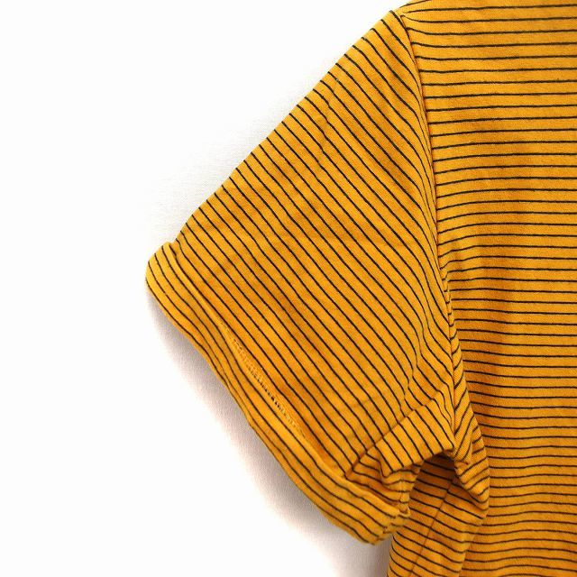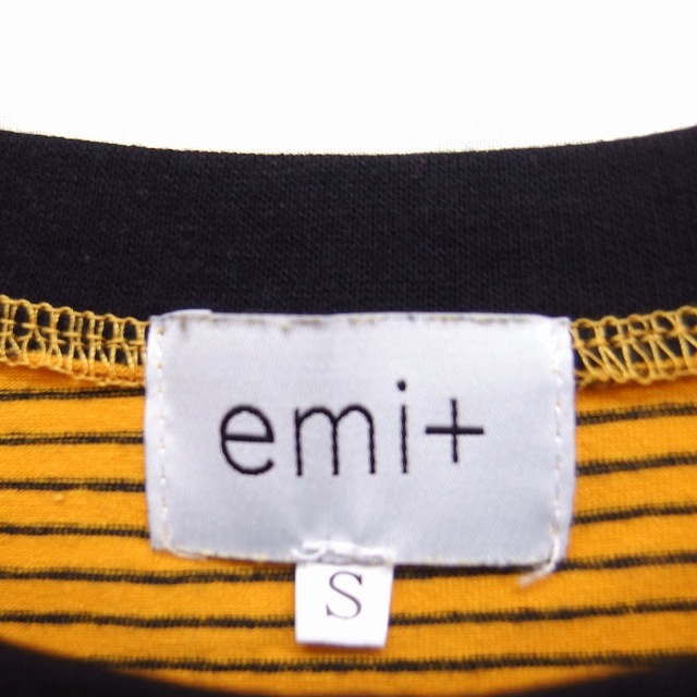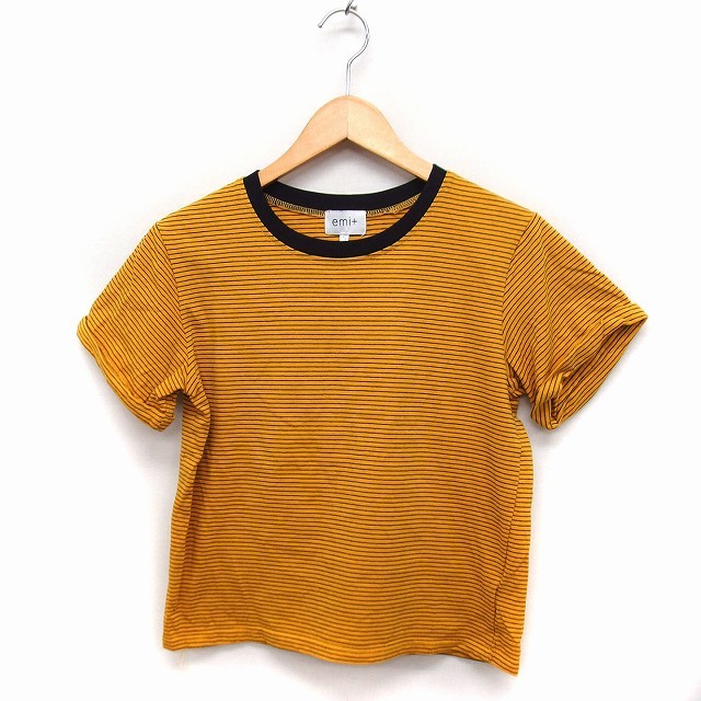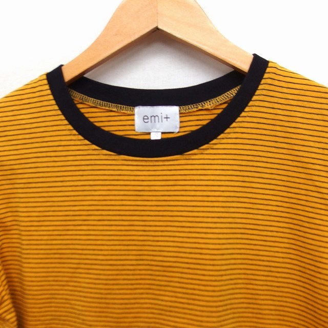 エミプラス emi+ ボーダー柄 カットソー Tシャツ 半袖 丸首 ロールアップ S マスタード 黄 /FT40 レディース