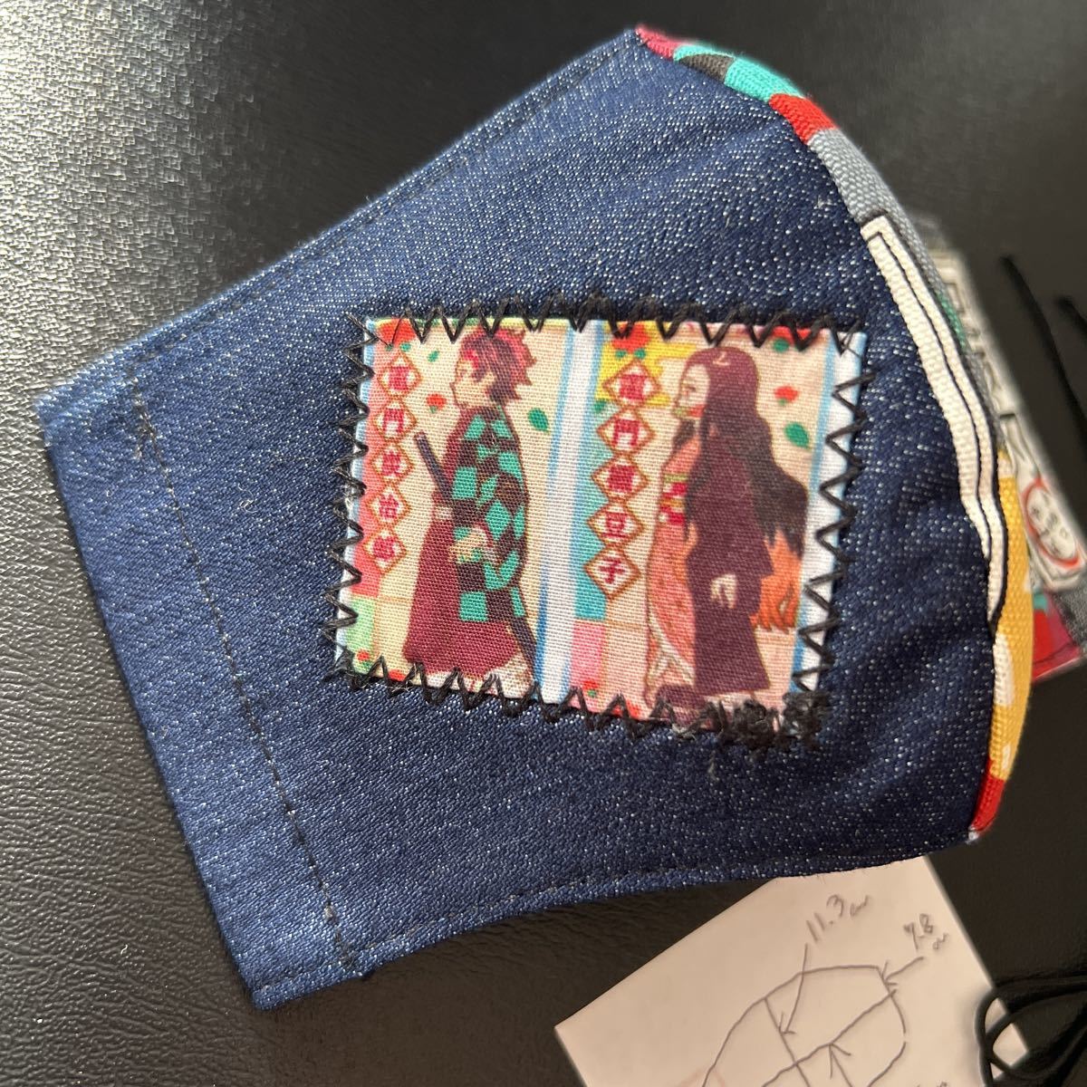 鬼滅の刃★インナーマスク★立体マスクカバー★子供★かっこいい★ブラック★イニシャル★ジーパン生地★