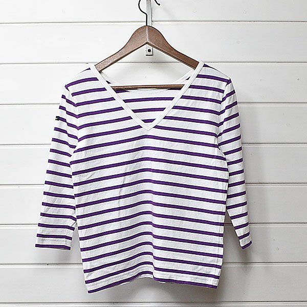 ルミノア バックVネック ボーダー カットソー 1 ホワイト パープル le minor |