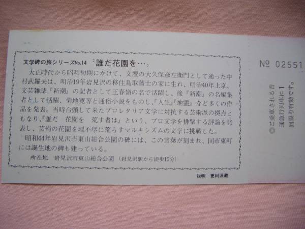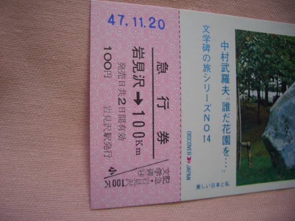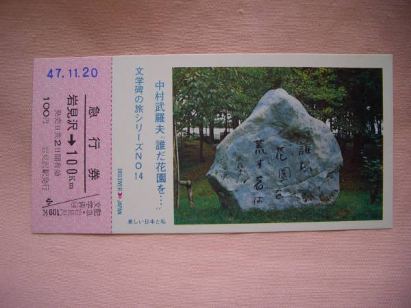 | ■【岩見沢駅発行】文学碑の旅シリーズ急行券 No.14■s47 | |
