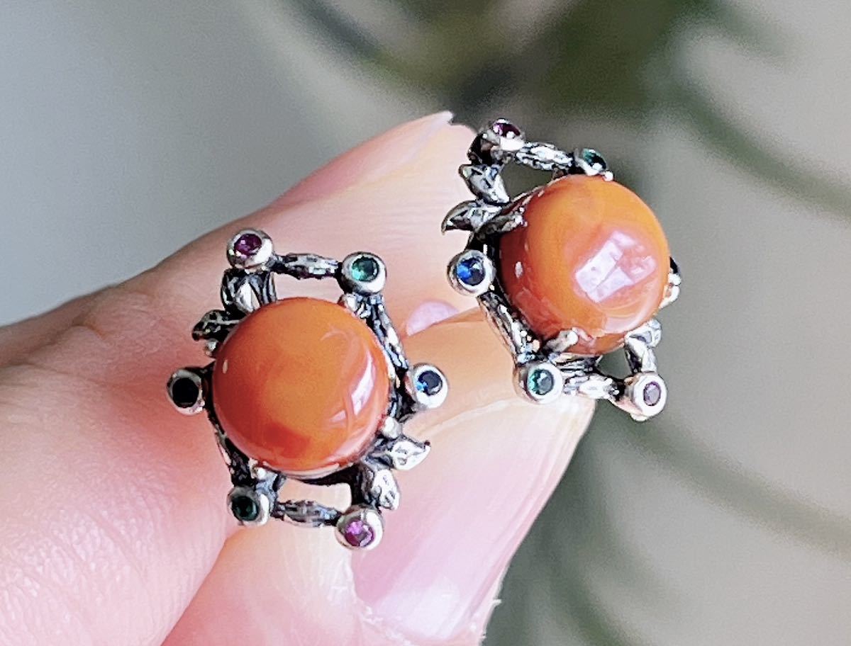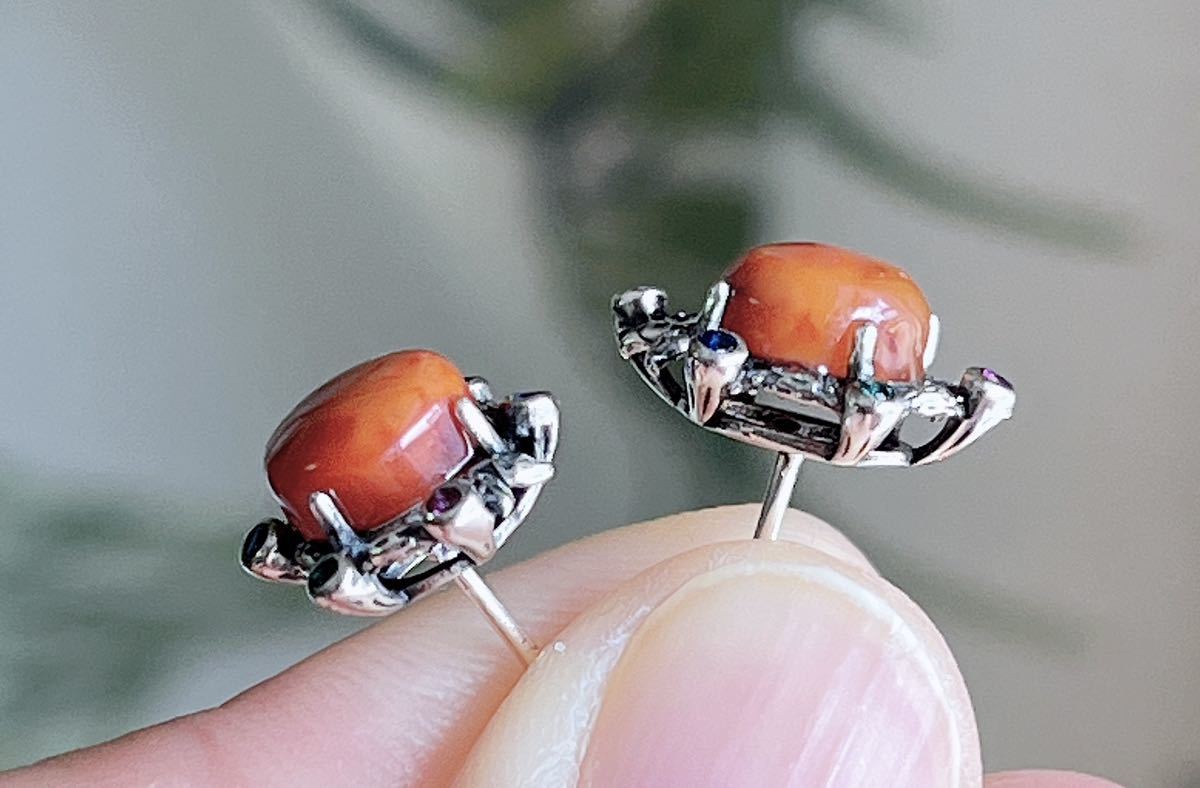 天然石 逸品ナンホーン瑪瑙の ピアスサイズ約:10mm*13.8mm*厚さ7mm;