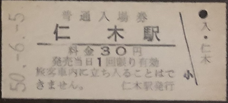 函館本線 仁木駅「30円券」入場券 S50.-6.-5