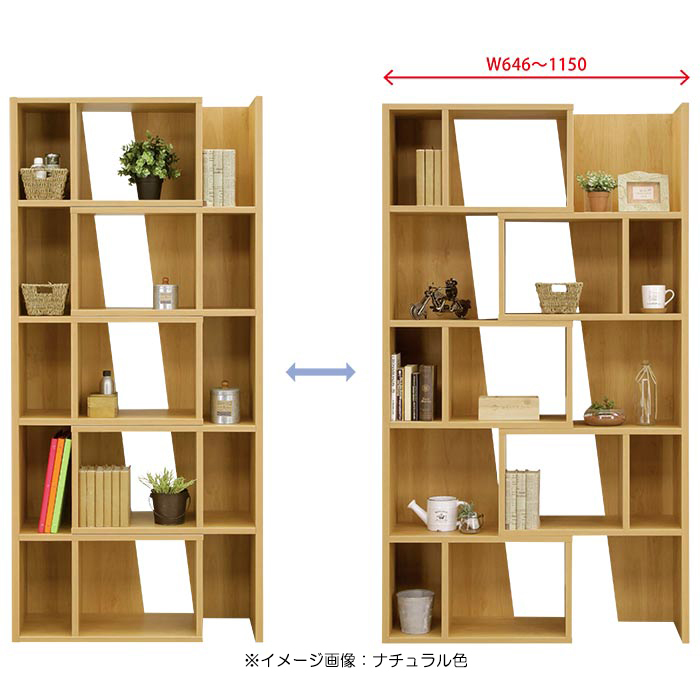 特  徴幅65cm~115cmまで伸びる伸縮自在のおしゃれなオープンラックです。「く」の字型やL字型など、お部屋や置く場所によって自由自在にレイアウトできるユニットです。