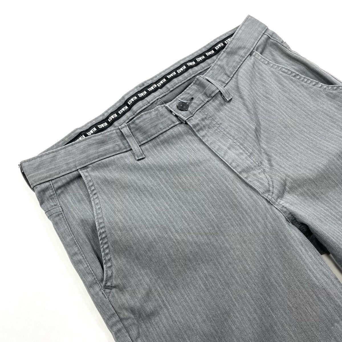 バックポケットステッチは高級感ある変形Wステッチを採用しお尻まわりを小さく見せ、仕事でも目立ちにくいコンパクトに洗練されたレザーラベル使用のパンツです。