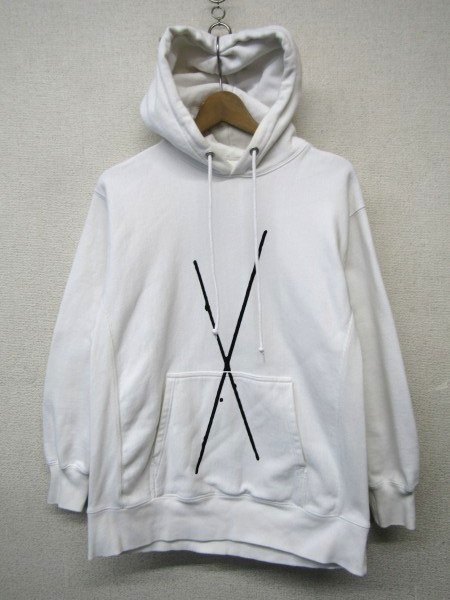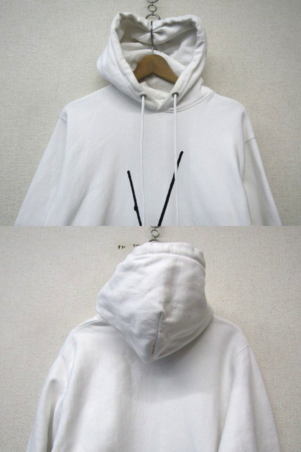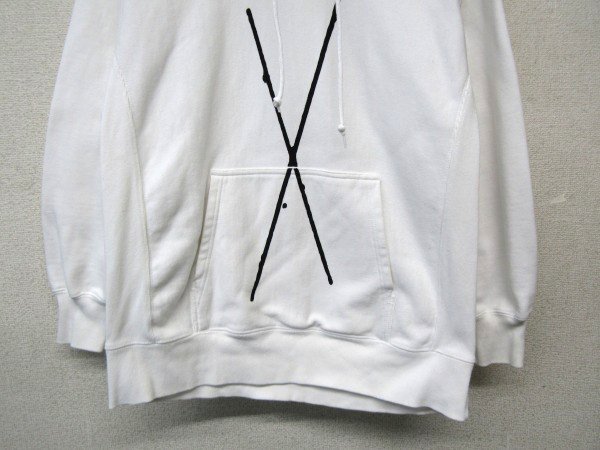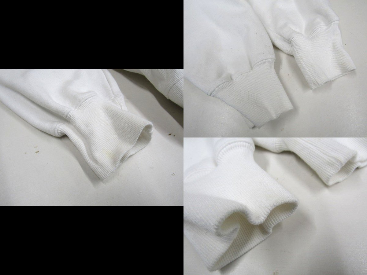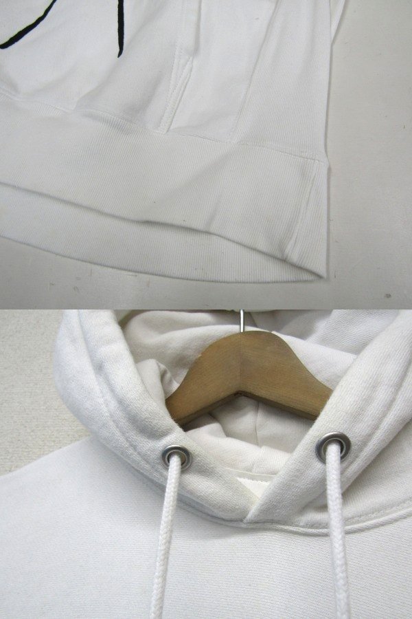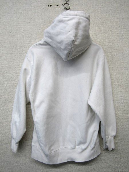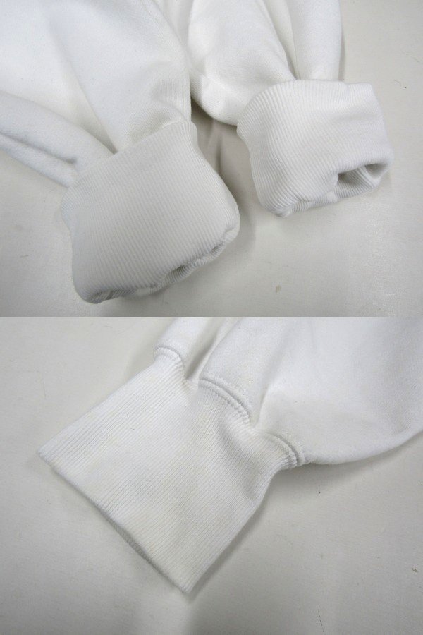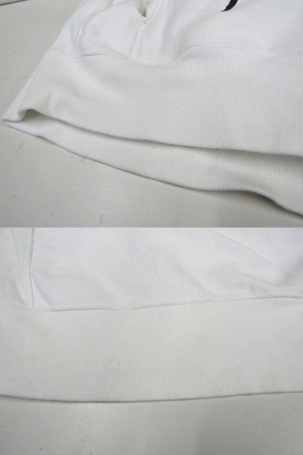 ★状態は10/6.5くらいです。保管時のシワや使用感はあります。写真掲載の通り、見にくいですが袖やリブ、フード部分中心とした全体的に黄ばみやシミ等があります。生地に縮みもありそうです。漂白等でメンテナンスして着る方へ向けてお安く出品いたします。詳しい状態につきましては写真をご確認下さいませ。