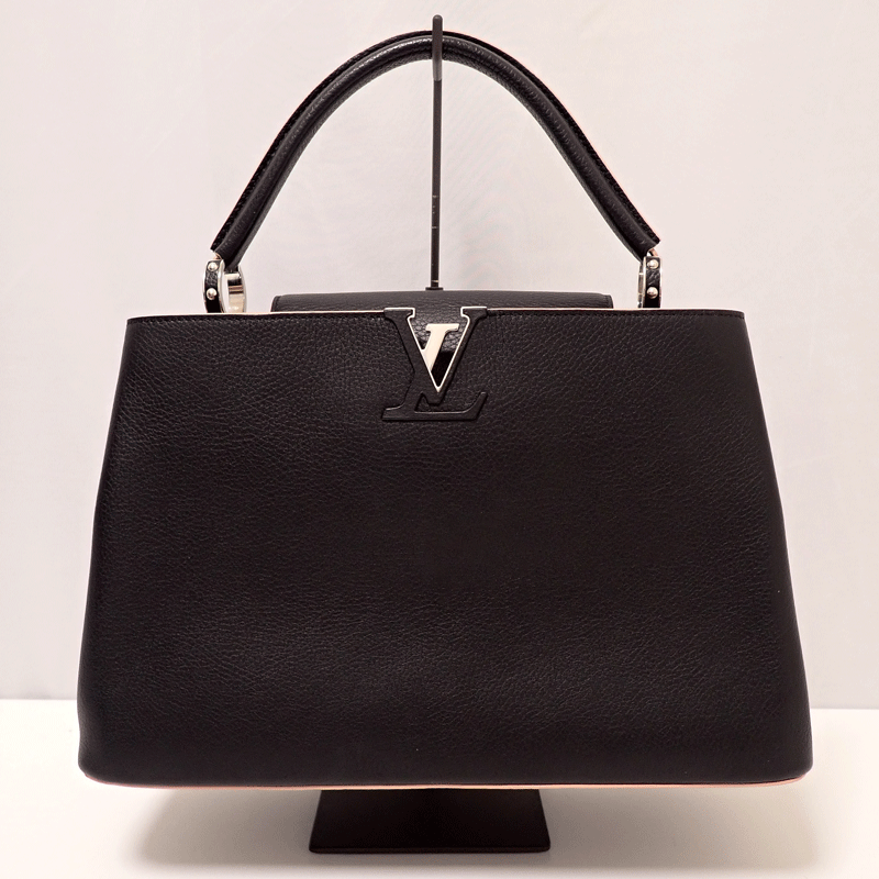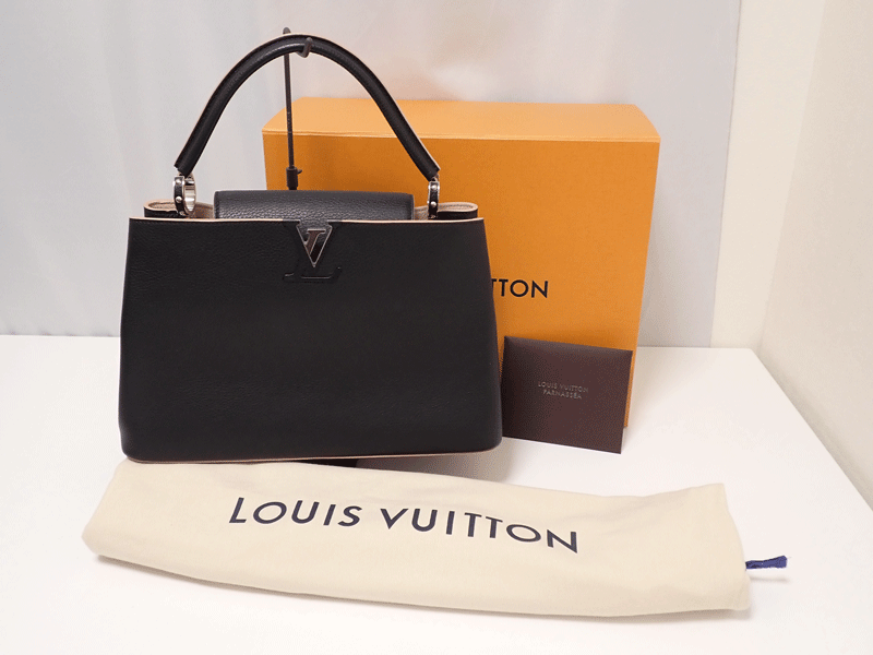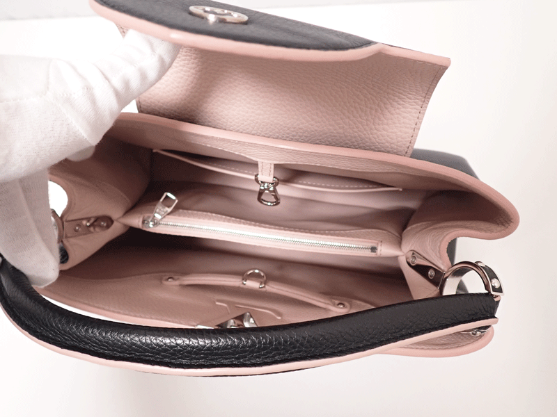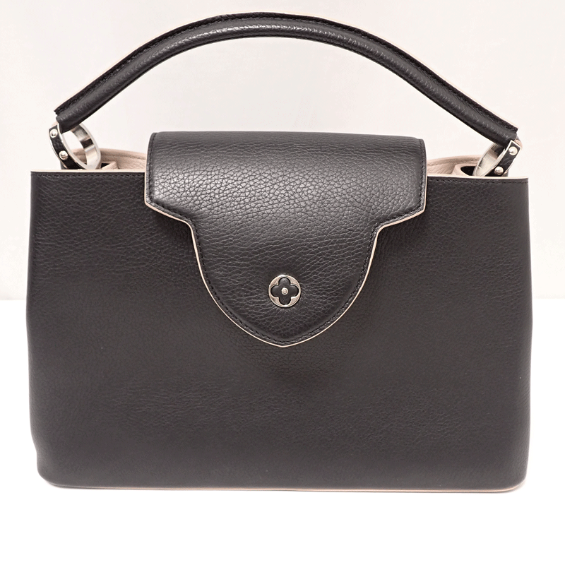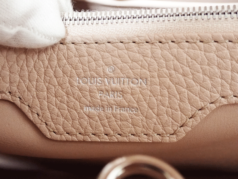 備考 製造番号 MI1145 2015年製造高品質のトリヨンレザーを使用したヴィトンの高級ラインの逸品。ジュエリーのようなリングで取り付けたハンドルが魅力。 1854年に初の店舗を構えたパリのカプシーヌ通りにちなんで名づけられた。 フラップ部分を中に入れればLVシグネチャーが、外に出せばモノグラム・フラワーが見え隠れし、2通りの装いを楽しめます。