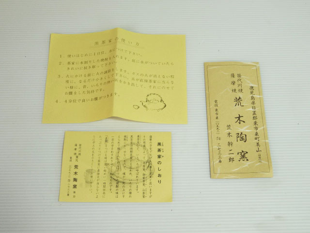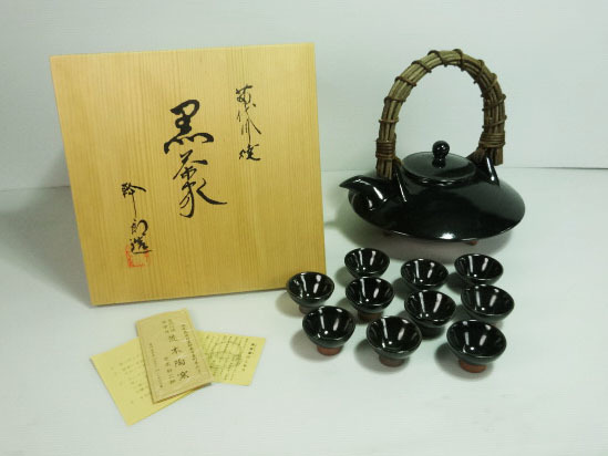 | 商品名 | 薩摩焼 苗代川焼 ◆ 荒木幹二郎 黒茶家 焼酎茶家 酒器 大型 土瓶 直径28.5cm お猪口10客 共箱 ◆ 管38201 |