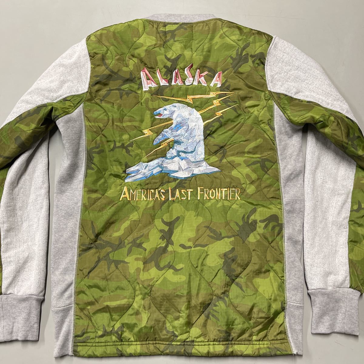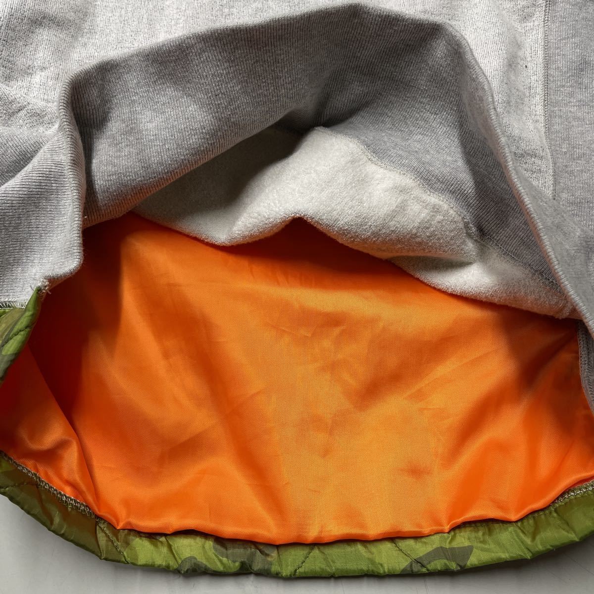 前後でスウェットとナイロン、キルティングの切り替えが凝った作りでお洒落な一着です!