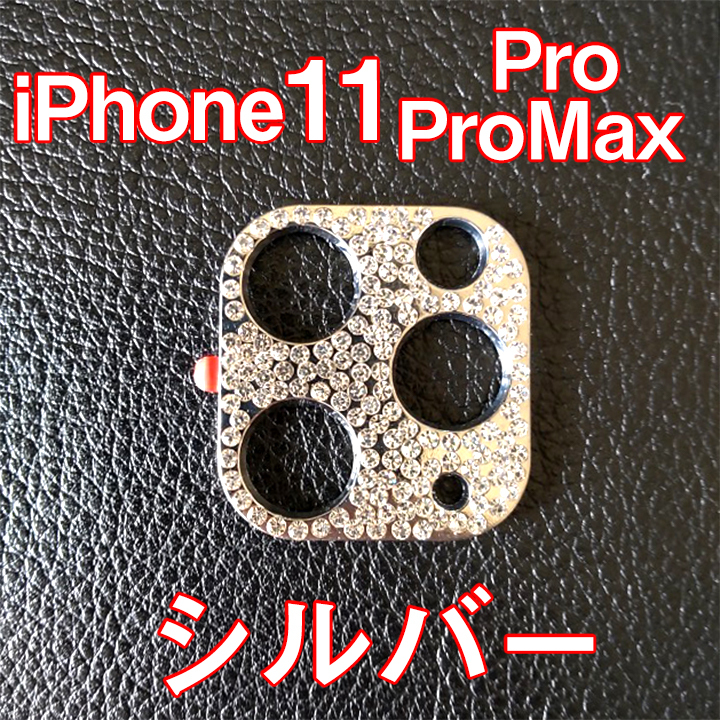 iPhone11 Pro 専用 カメラレンズカバー シルバー ラインストーン キラキラ