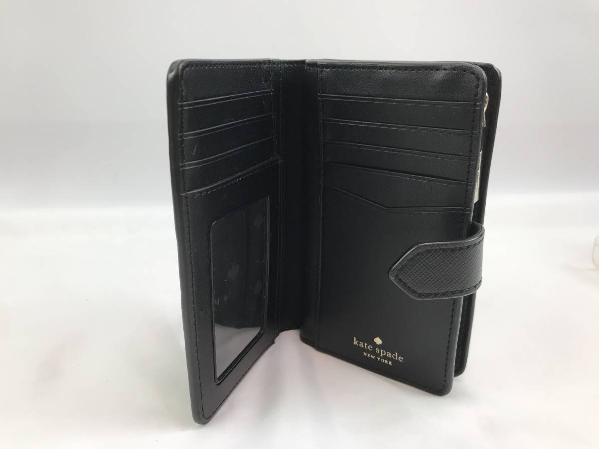 -------------------------------------------------------------------------------------------- ご入札前に必ず下記の発送詳細・注意事項をお読みになり、お客様がご十分にご納得された上でのご入札、ノークレーム・ノーリターンでお願い致します。 緊急なこともコメントしますので自己紹介欄も必ずご確認下さい。 (ご入札された時点で同意されたとみなします) 質問・疑問等がございます方は予め質問欄にてお問い合わせください。 ご質問にはなるべくお答えするようにしておりますが、出来ない時もございます。その際はご了承下さいませ。 ------------------------------------------------------------------------------------------------ 商品:☆【Kate Spade】ケイトスペード 二つ折り財布 ブラック ♯180316-53 ・ブランド:【Kate Spade】(ケイトスペード) ・カラー:黒 ・サイズ:約W14㎝×H9㎝×D4cm (素人採寸によるものですので多少の誤差はご容赦下さい) ・仕様:ファスナー式小銭入れ×1、札入れ×2、オープンポケット×4、カードポケット×8、パスケース×1 ・状態:中古品 (画像参照) 商品管理番号:♯180316-53 ※付属品等は、画像にてご確認ください。 画像の物が全てです。 | ||
