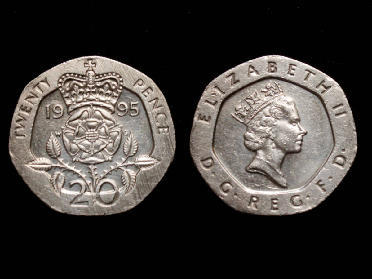 【イギリス】 1995年 20 ペンス 白銅貨 エリザベス2世女王 イングランド 薔薇 ローズ
