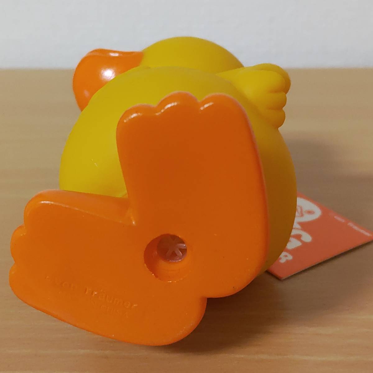 スクイズ素材で柔らかく、押すとへこんで中の笛がピューッと鳴り可愛いです☆