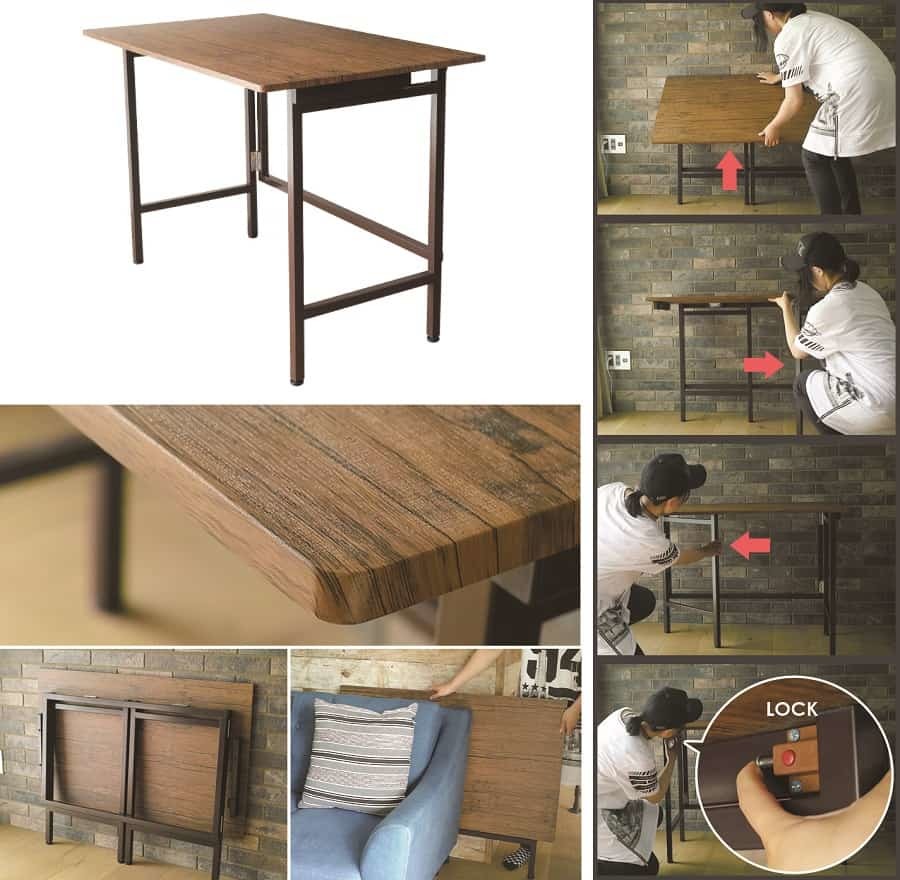 リアルですが本物の木ではなく、木目に沿った凹凸の施さ れた「3D PVC」を使用しています。折りたたみデスクというとデザインは2の次にされがちですが、この質感ならト レンドであるブルックリンスタイルのインテリアにもマッチする仕上がりとなっています。