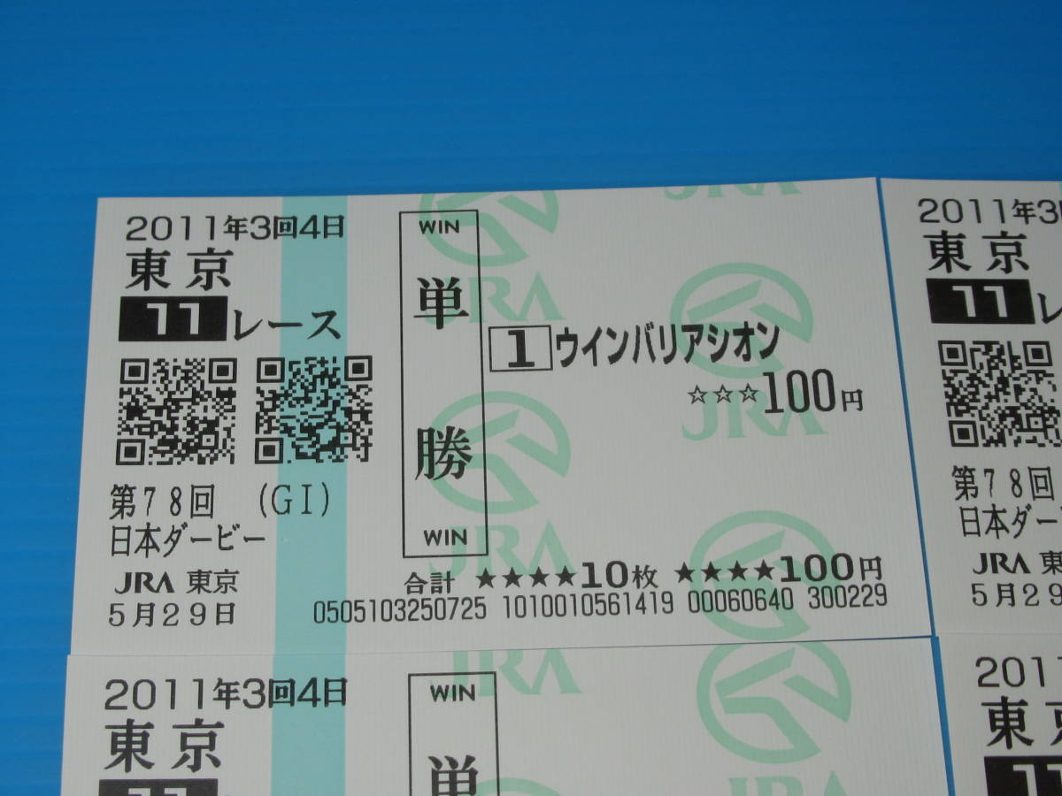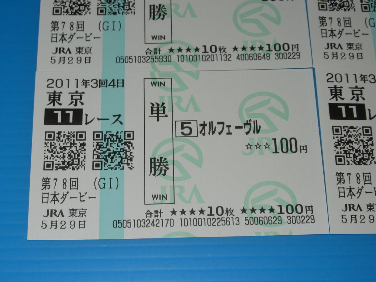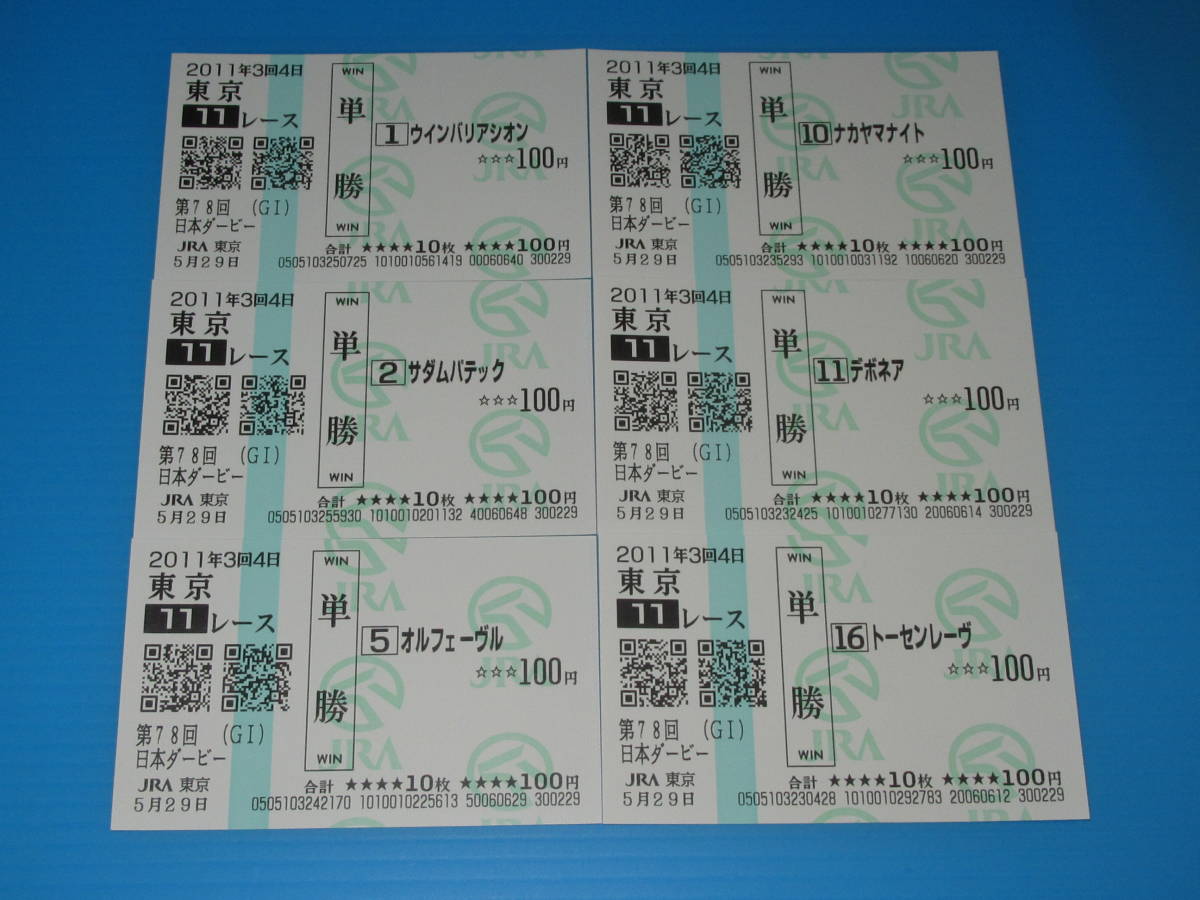 匿名送料無料 現地的中 単勝馬券 ★オルフェーヴル 第78回 日本ダービー GⅠ 2011.5.29 即決!ウインバリアシオン サダムパテック他全6枚