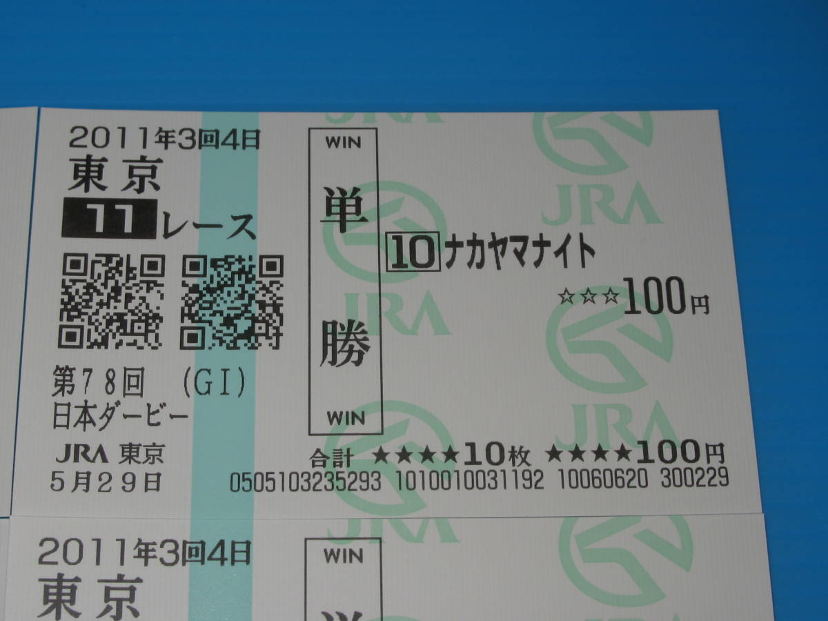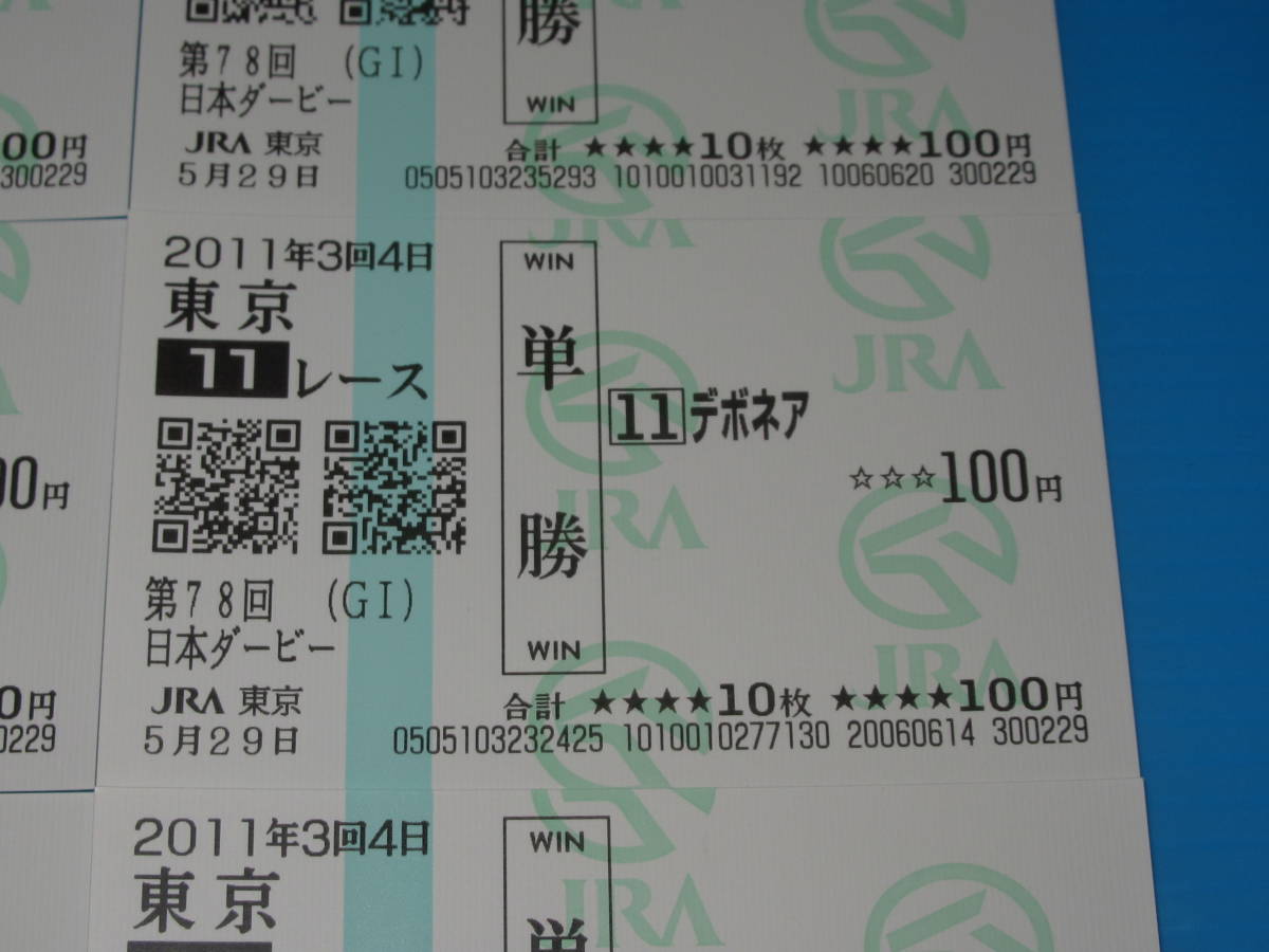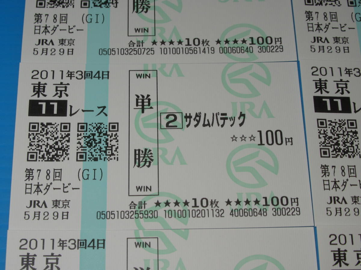 匿名送料無料 現地的中 単勝馬券 ★オルフェーヴル 第78回 日本ダービー GⅠ 2011.5.29 即決!ウインバリアシオン サダムパテック他全6枚