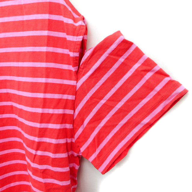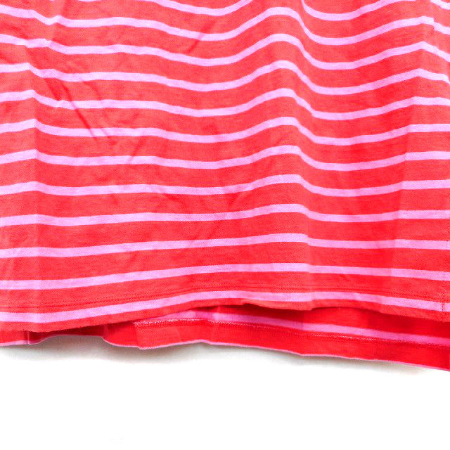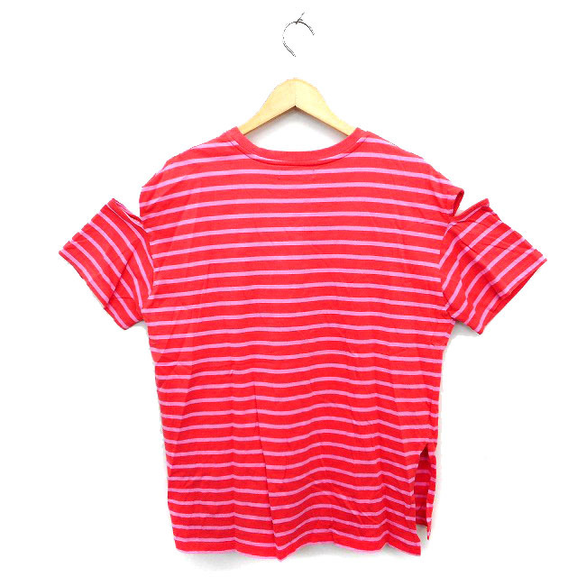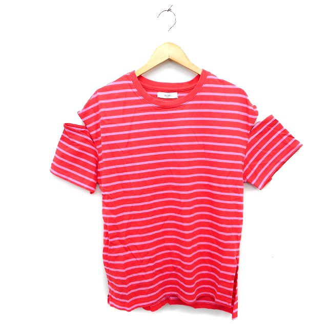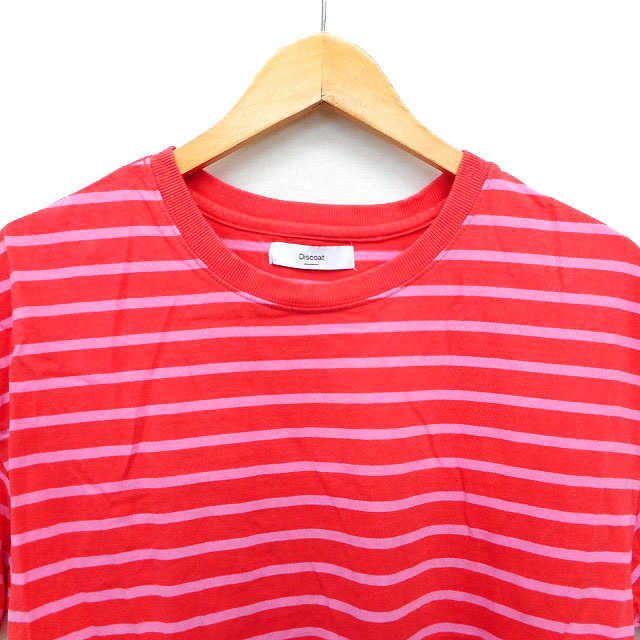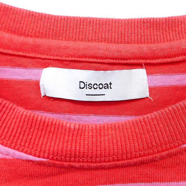 ディスコート Discoat カットソー Tシャツ クルーネック ショルダーカット コットン 綿 リブ ロングテール ボーダー 半袖 F 赤