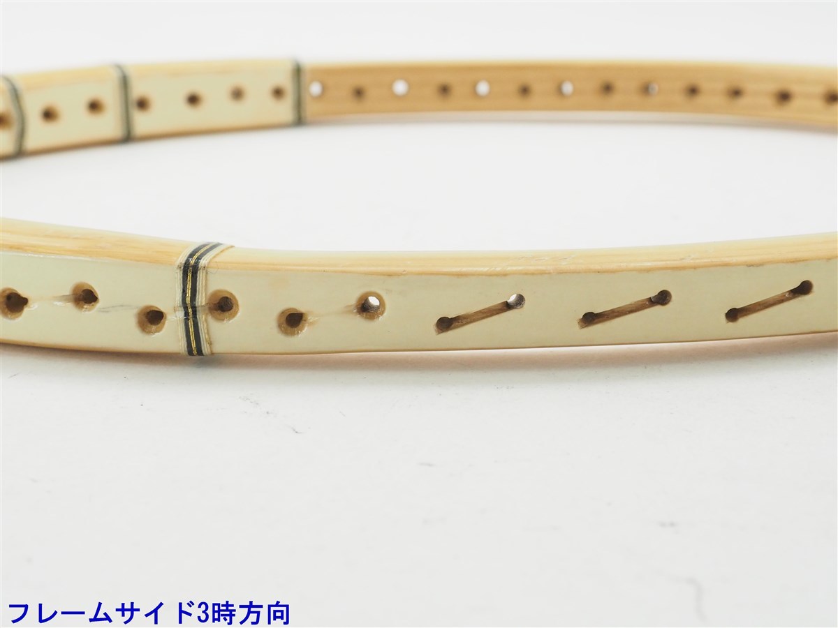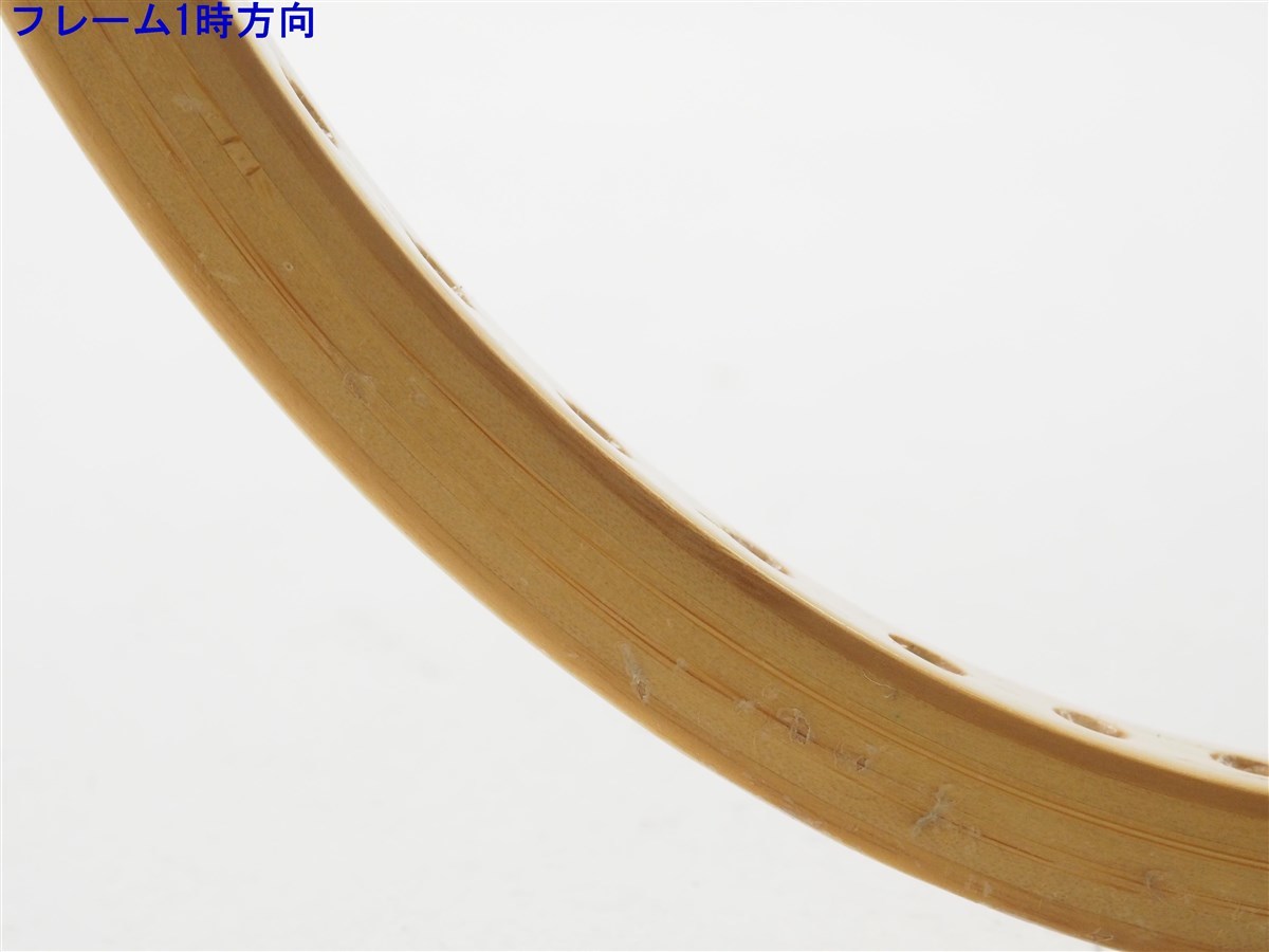 大きな目立つような深いキズはありませんが、トップフレームに細かい擦りキズが若干あります。ラケットに反りはありません。