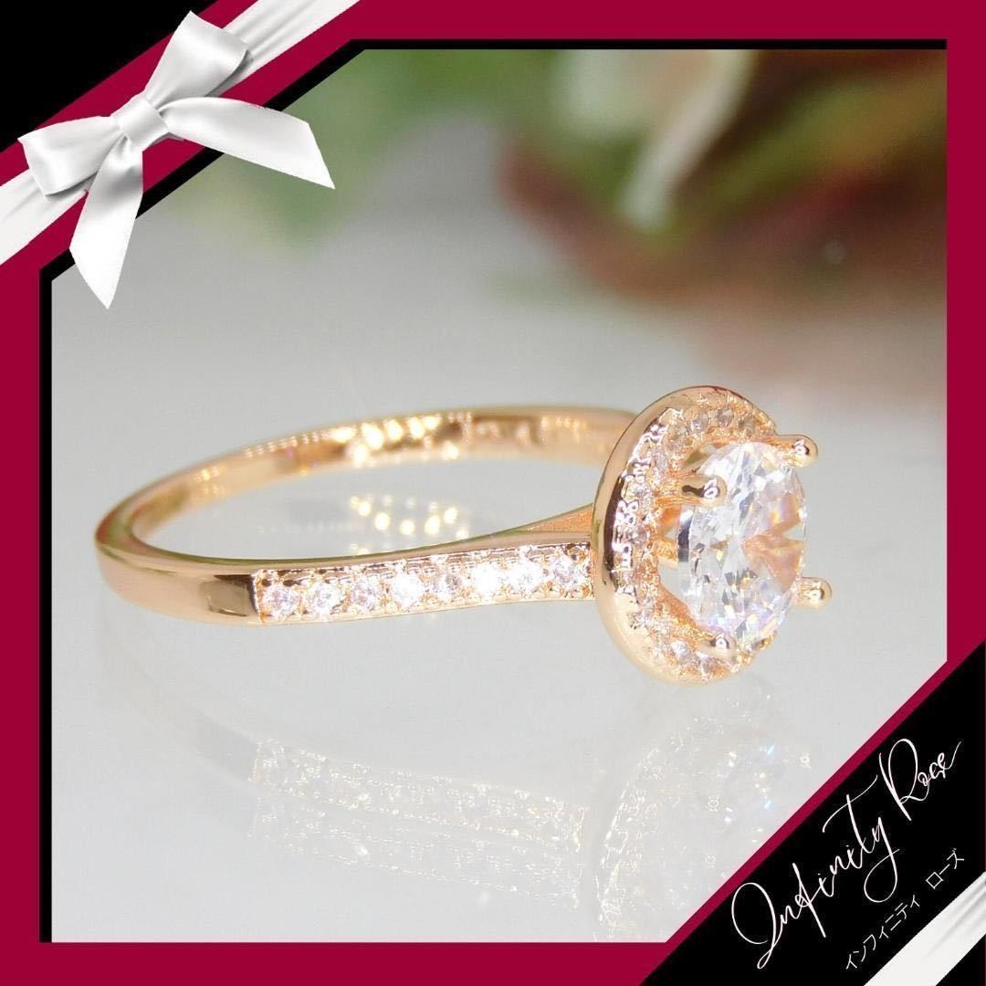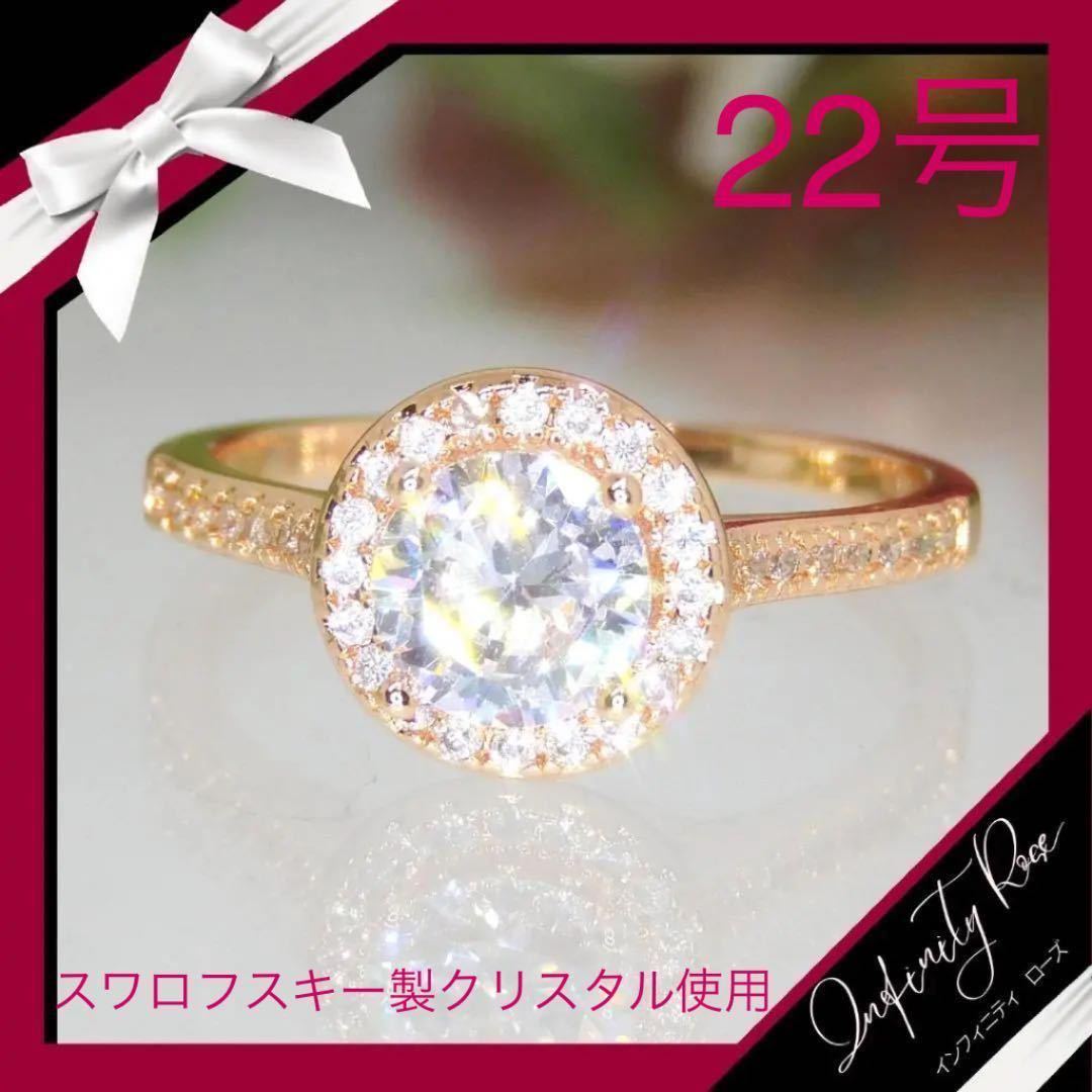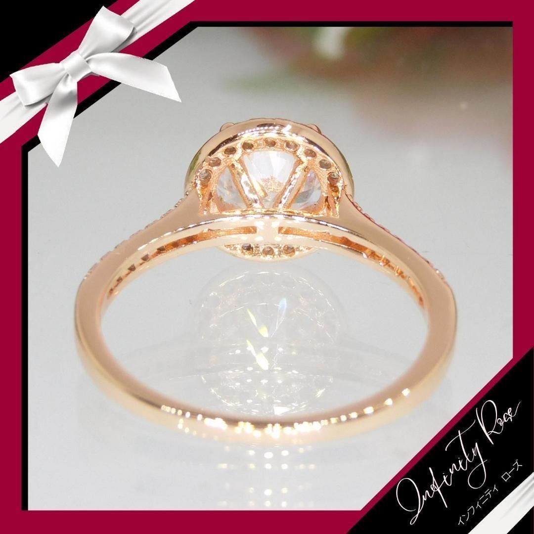 (1117)22号 ピンクゴールド高価なまんまるスワロ豪華爪留めリング 指輪 スワロフスキー製クリスタル使用