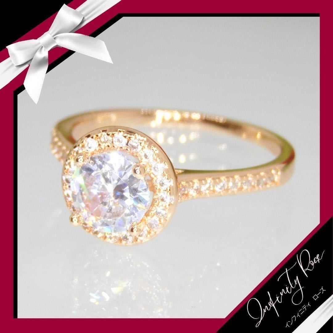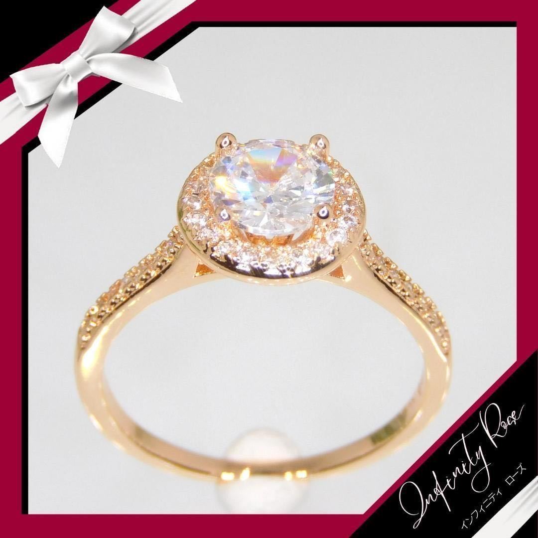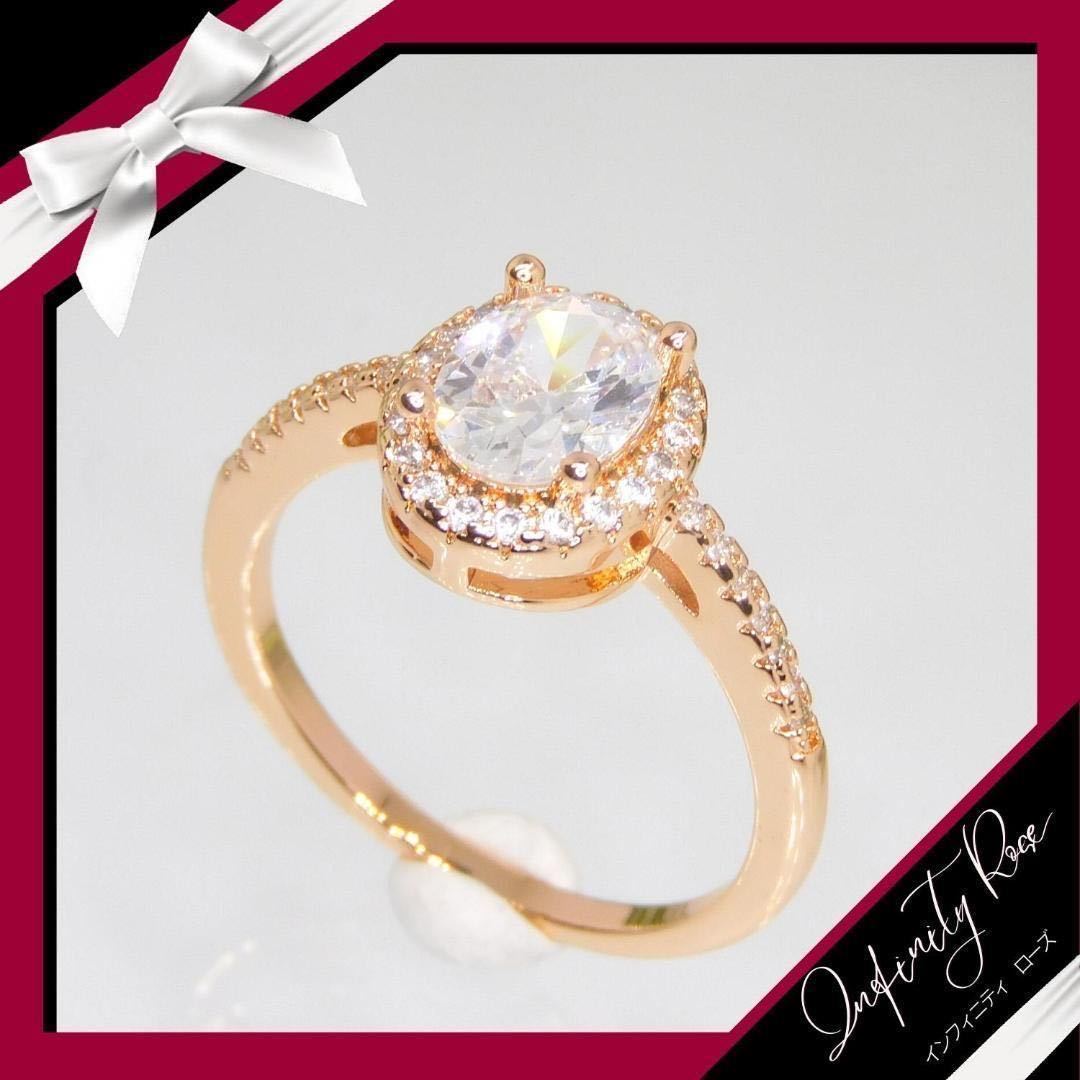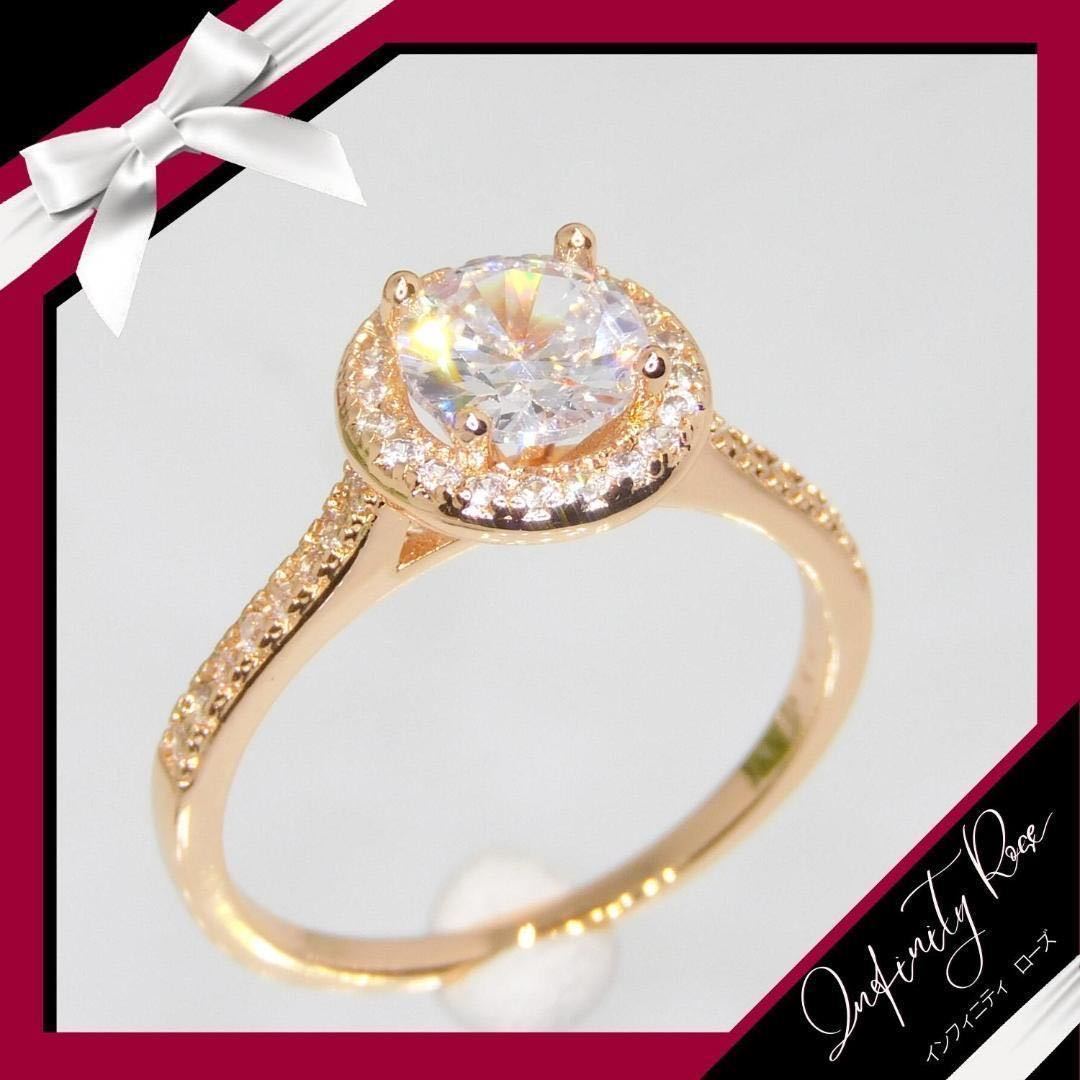 (1117)22号 ピンクゴールド高価なまんまるスワロ豪華爪留めリング 指輪 スワロフスキー製クリスタル使用