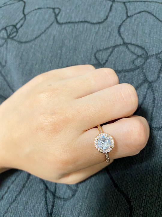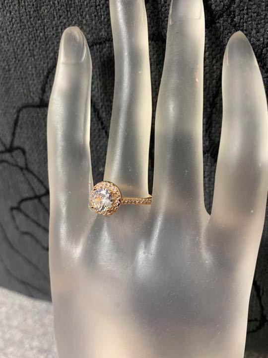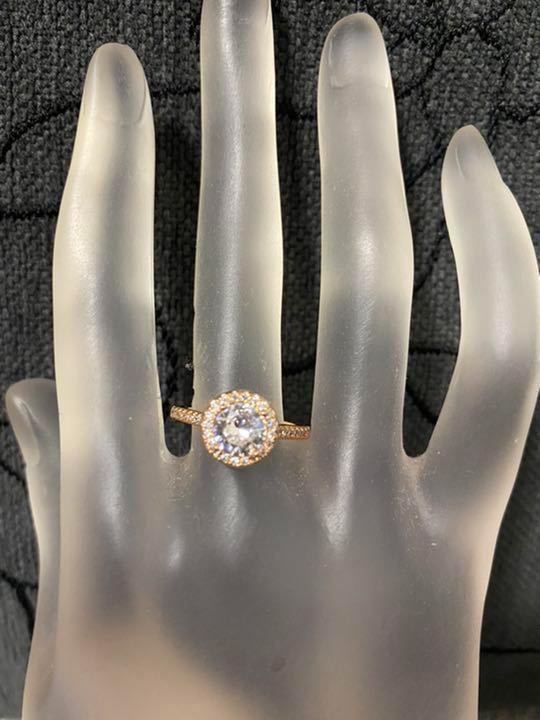 #ピンクゴールド高価なまんまるスワロ豪華爪留めリング