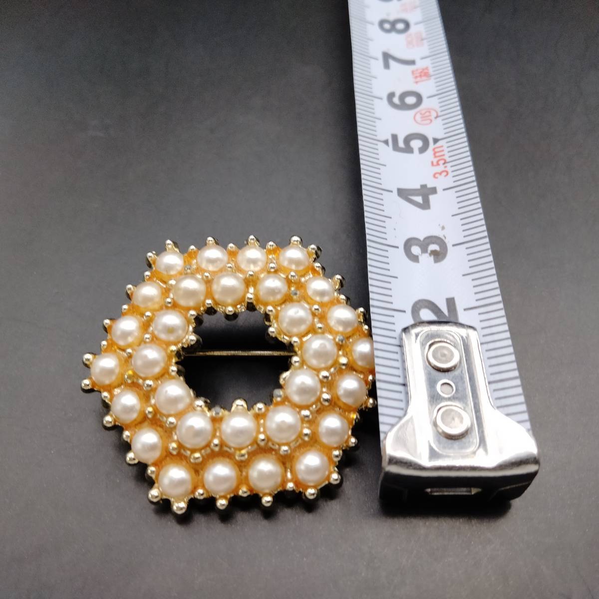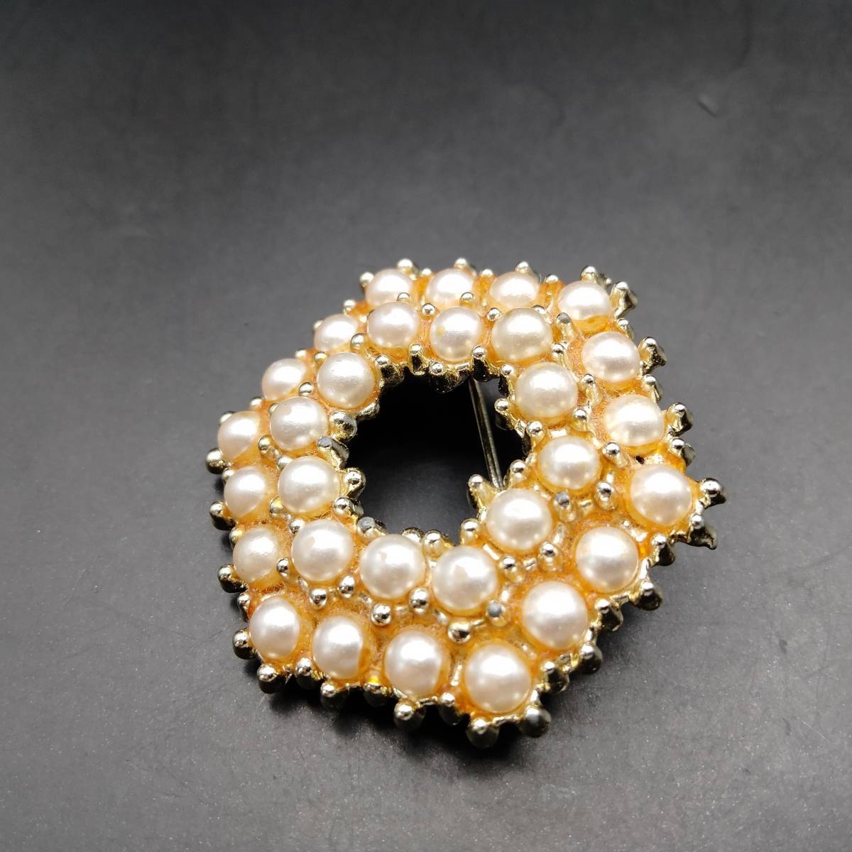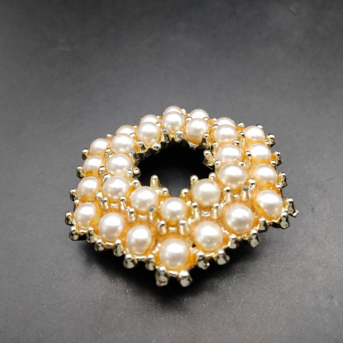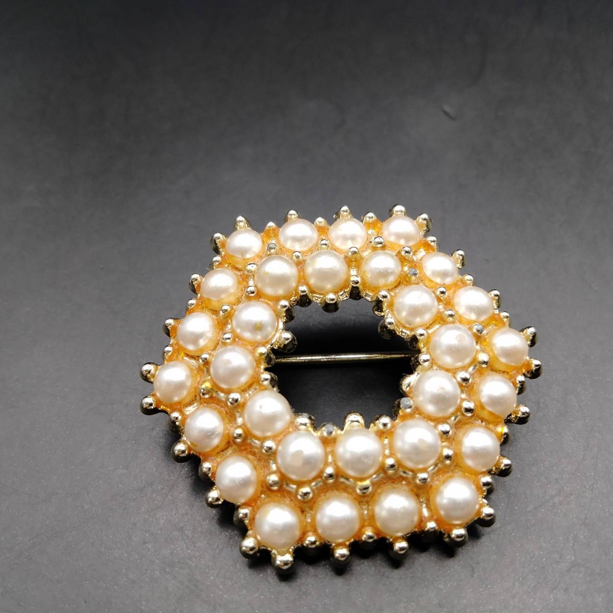 6角形 ホワイト フェイク パール ブリオン オープン ビンテージ ブローチ 昭和レトロ コスチューム ジュエリー 輸入 7S-F