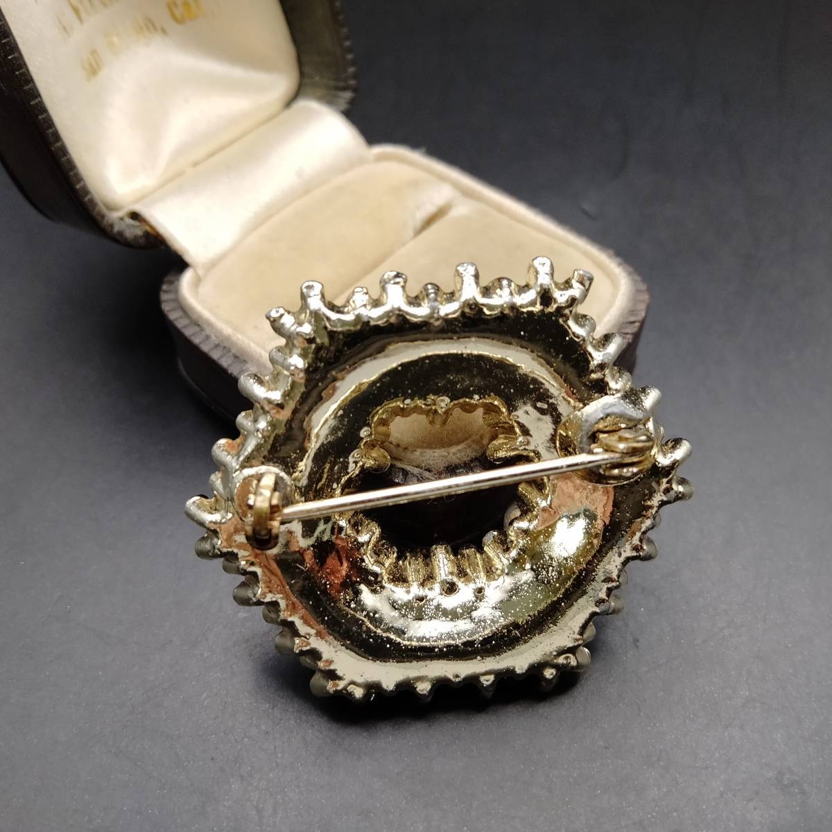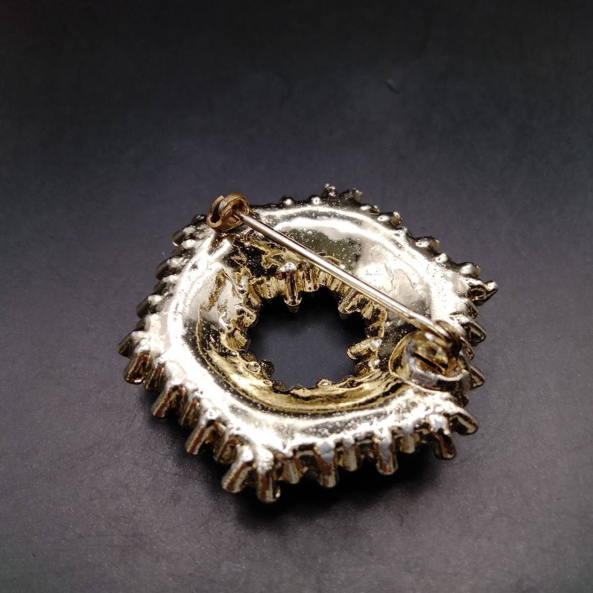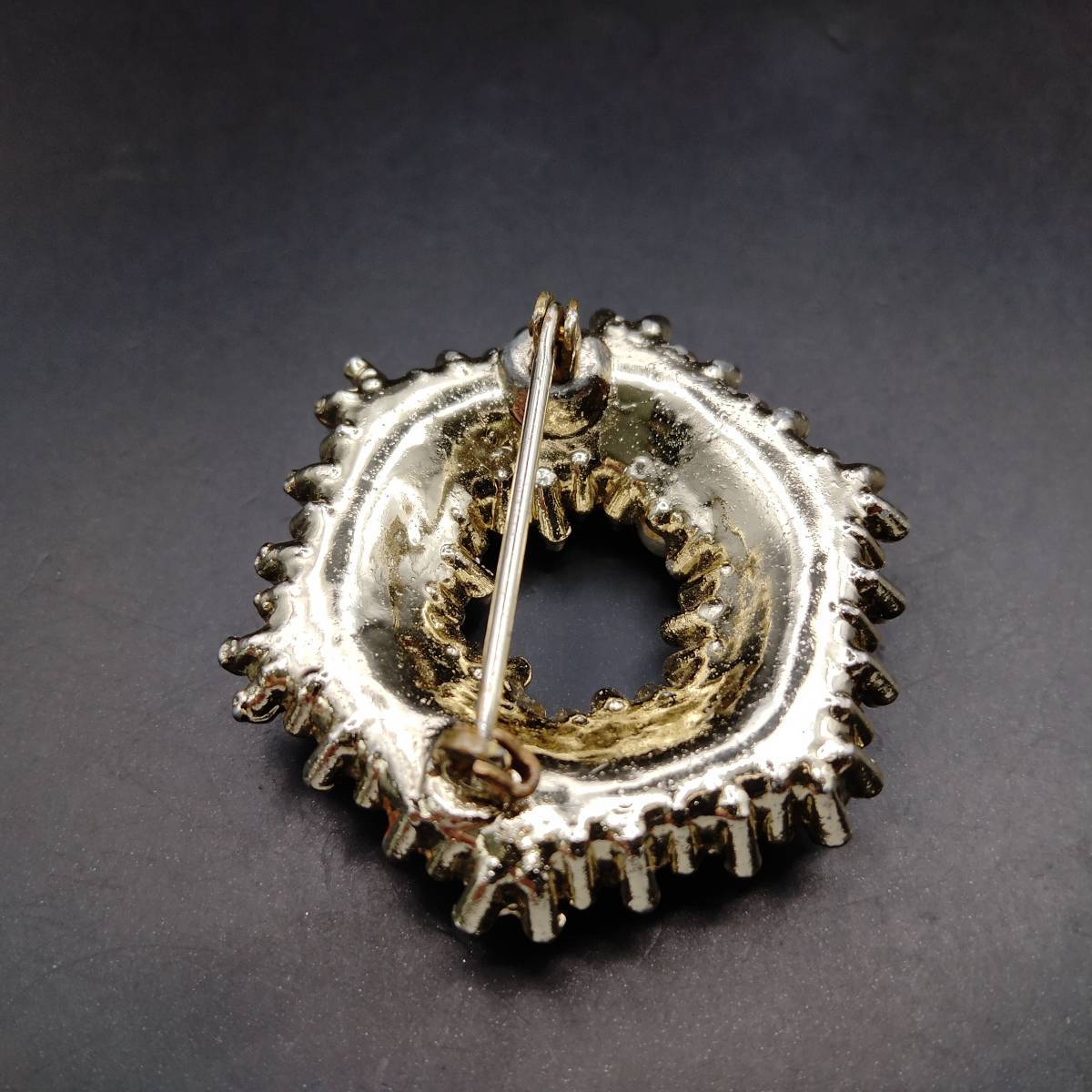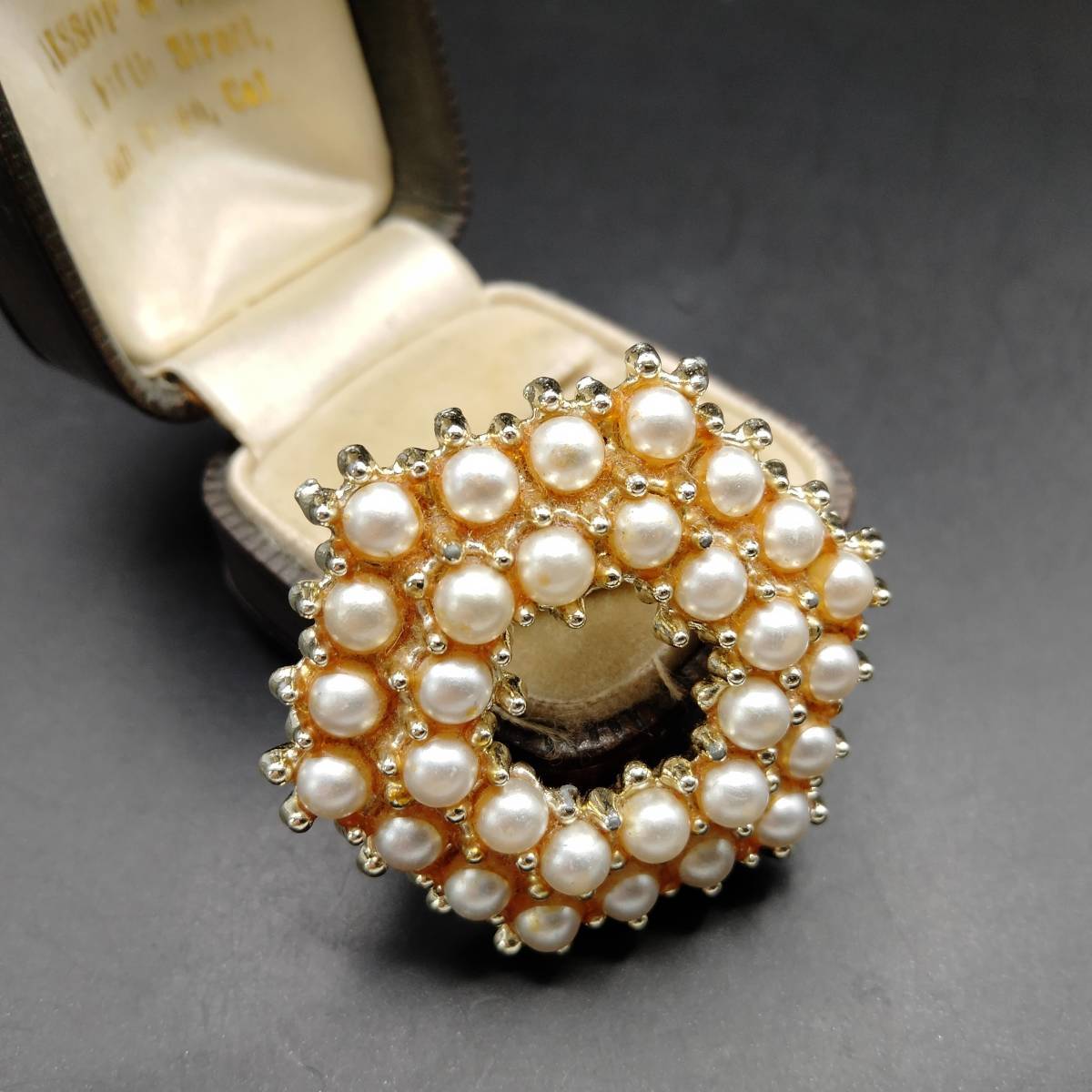 6角形 ホワイト フェイク パール ブリオン オープン ビンテージ ブローチ 昭和レトロ コスチューム ジュエリー 輸入 7S-F