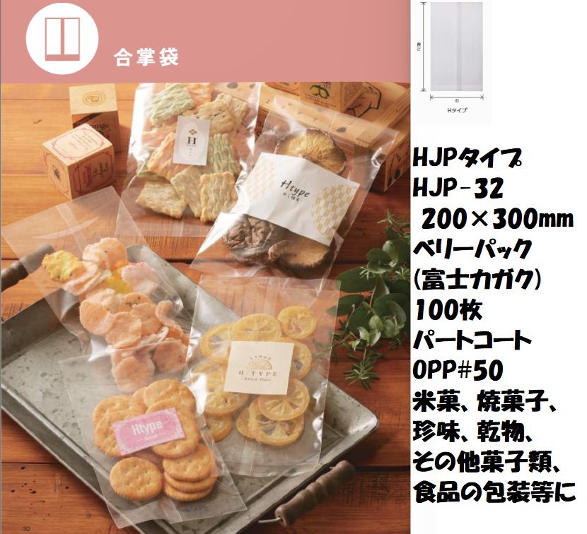 品名 OPPパートコート合掌袋 小ロットタイプ HJP-32