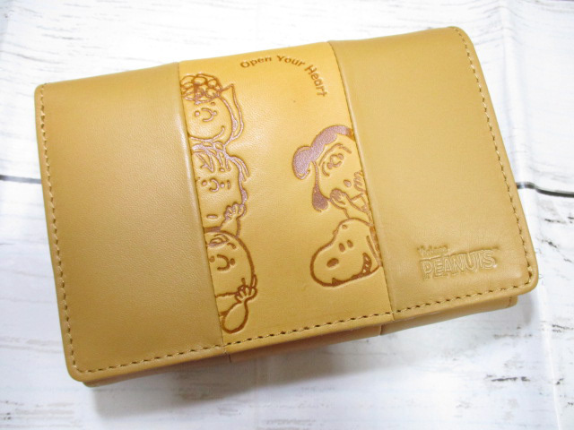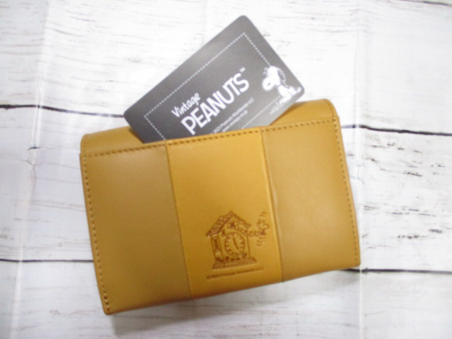 新品 財布 レディース 二つ折り かぶせ スヌーピー SNOOPY 本革 Open Your Heart Vintage PEANUTS 可愛いデザイン キャメル