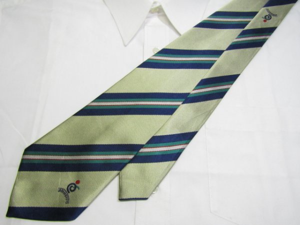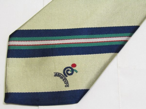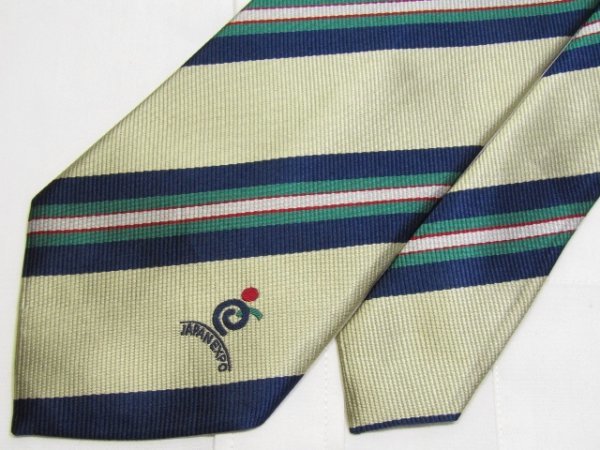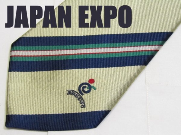 AA 300 ジャパンエキスポ JAPAN EXPO ネクタイ 日本製 緑系 ライトグリーン 光沢 レジメンタルストライプ ロゴワンポイント ジャガード