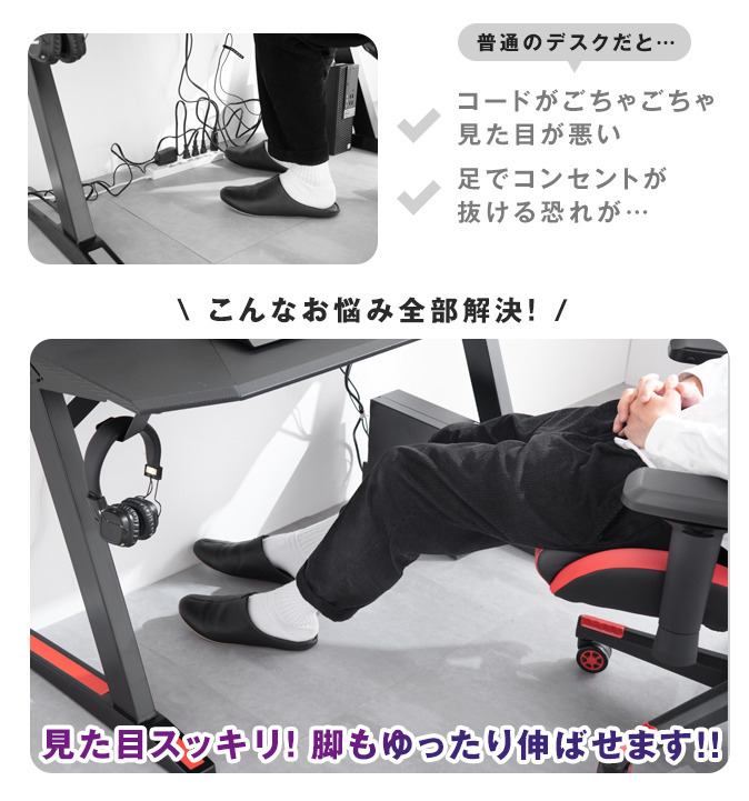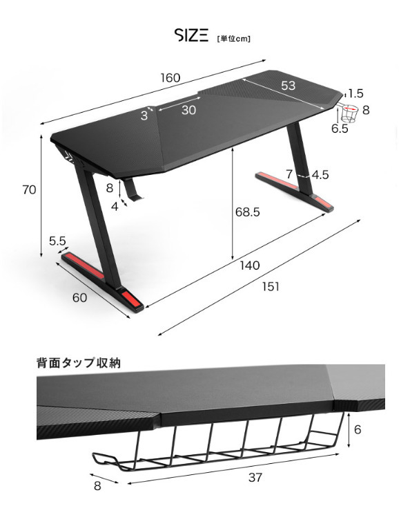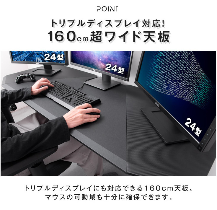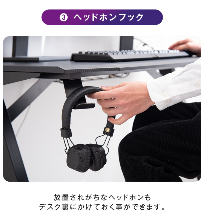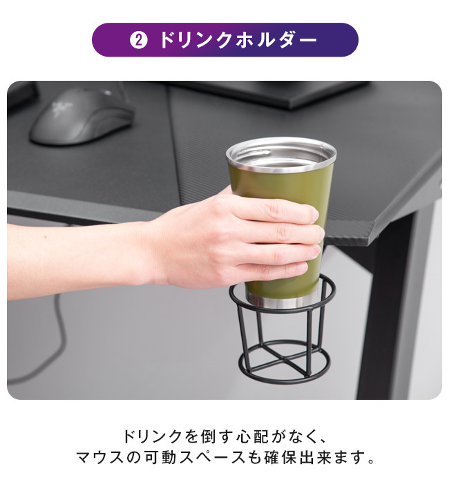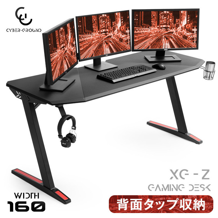 ゲーミングデスク 幅160cmヘッドホンフック ドリンクホルダー ゲームデスク ブラック