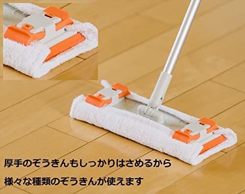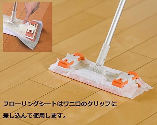・1.本体 約幅25.5cm×奥行10cm×高さ68.5-114.5cm 187157・・Color:1.本体・サイズ:約幅25.5×奥行10×高さ68.5-114.5cm・素材・材質:グリップ:ポリエチレン(抗菌加工)、ハンドル:アルミ合金、スチール(ポリプロピレン被覆・抗菌加工)、柄入れ:ポリプロピレン、プレート:ポリプロピレン、クリップ:ポリアセタール、クッション:熱可塑性エラストマー、クロス:ポリエステル、ナイロン (抗菌防臭加工) サイズ約20cm×30cm・生産国:中国・重量: 約380g・抗菌マイクロファイバークロス付きぞうきんもフローリングシートも両方使える便利なフローリングワイパー。 挟み込みクリップで簡単にぞうきんを取付。フローリングシートは各社共通サイズ(約30cm×20cm)を取付できます。 クリップで厚手のぞうきんもしっかり固定、シートは差込み口にワンタッチで取り付けできます。 付属の抗菌防臭加工のマイクロファイバークロスで汚れをかき取ります。水にぬらして固く絞ると汚れ落としが効果的。 付属のマイクロファイバークロスはクロス表面に施したストライプ構造によって、濡れたクロスでも床面の滑りがよく、軽い力でお掃除できます。 本体の柄は抗菌加工の多角形パイプで握りやすく。力が込めやすいです。 本体裏面のエラストマークッションは弾力のある素材で耐久性が高く、床面に密着。デコボコの表面で汚れをしっかり落とします。 伸縮タイプで身長に合わせて調整可能。68.5cm~114.5cm